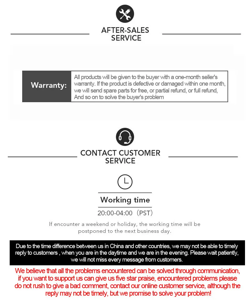 5. Foam box is used for retail packaging, which can reduce the damage to the product during shipping. If you receive a damaged product. Please contact us. We are willing to provide repair or resend service. Raising a dispute or leaving a negative