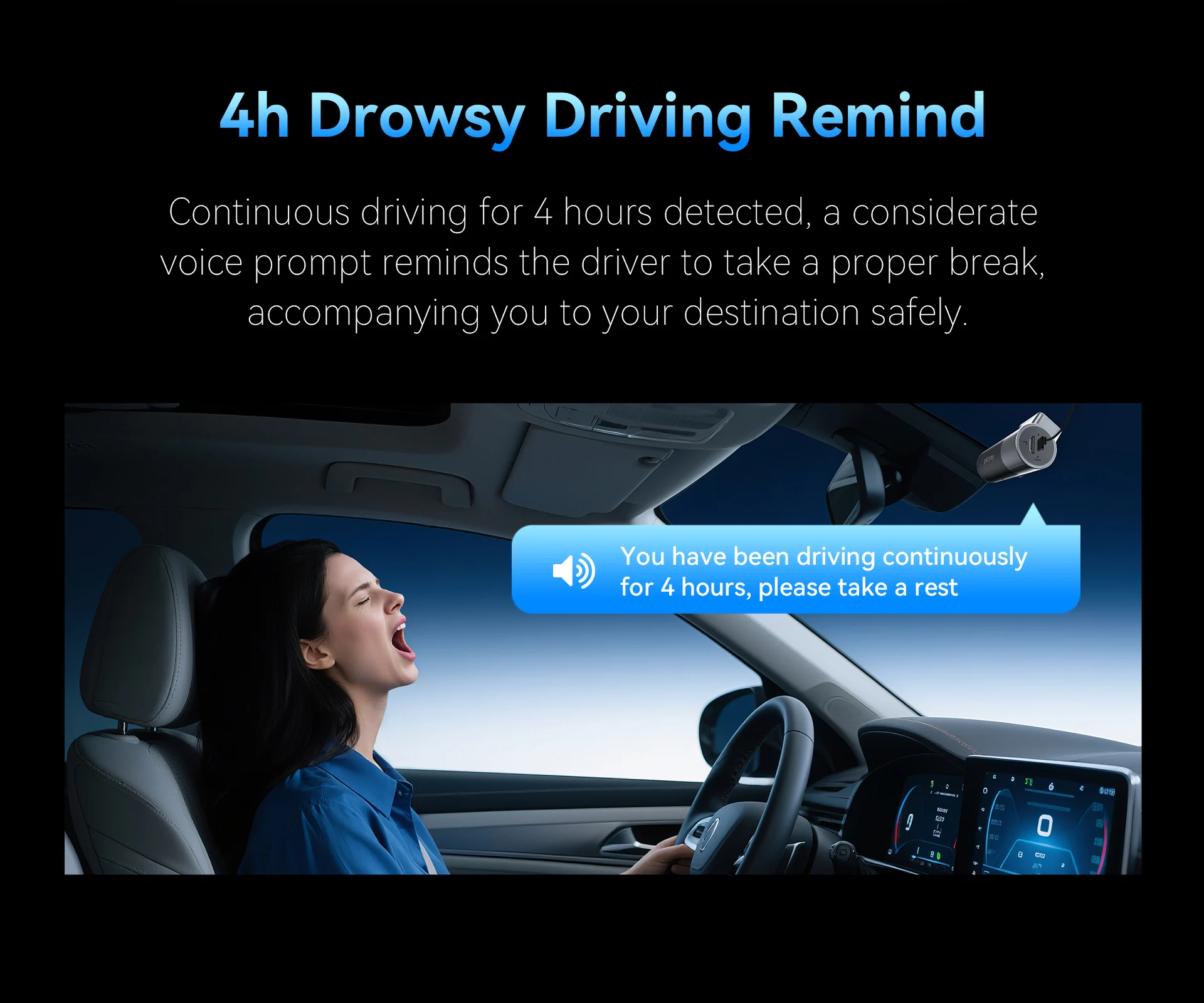 Continuous driving for 4 hours detecteda considerate voice prompt reminds the driver to take a proper break.accompanying you to your destination safely.