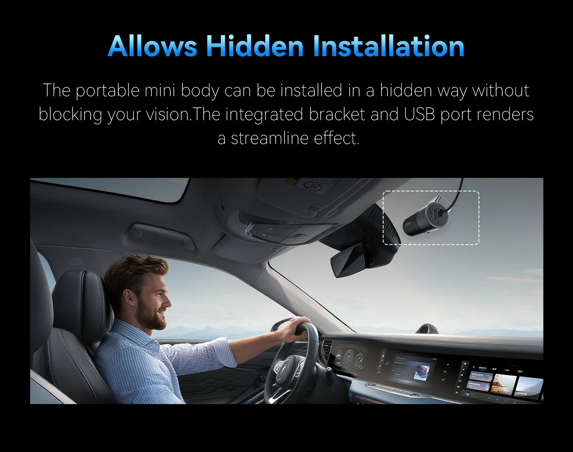 The portable mini body can be installed in a hidden way without blocking your vision.