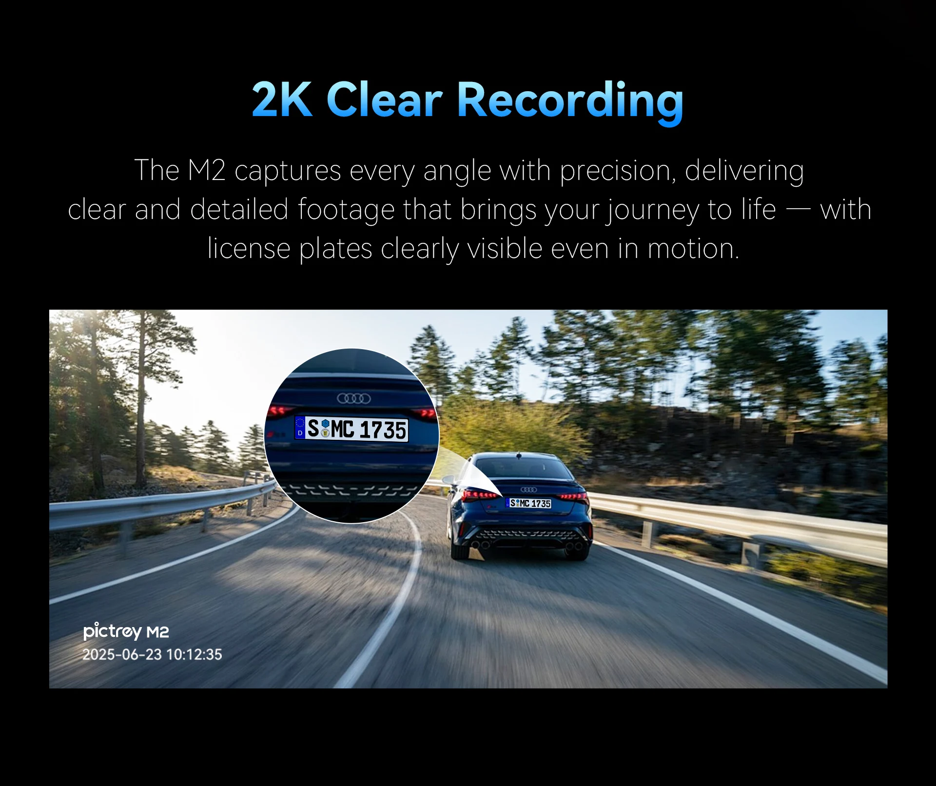 Powered by Pictrey's advanced NightVIS 2.0 technology , the M2 enhances night vision for driving at night, delivering brighter and clearer footage even in the darkest environments.