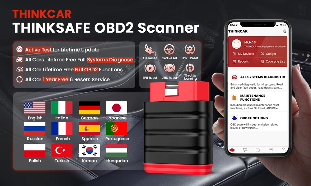 THINKCAR THINKSAFE –Full System Diagnostic & 6 Free Reset Service &120 Free Car Brands