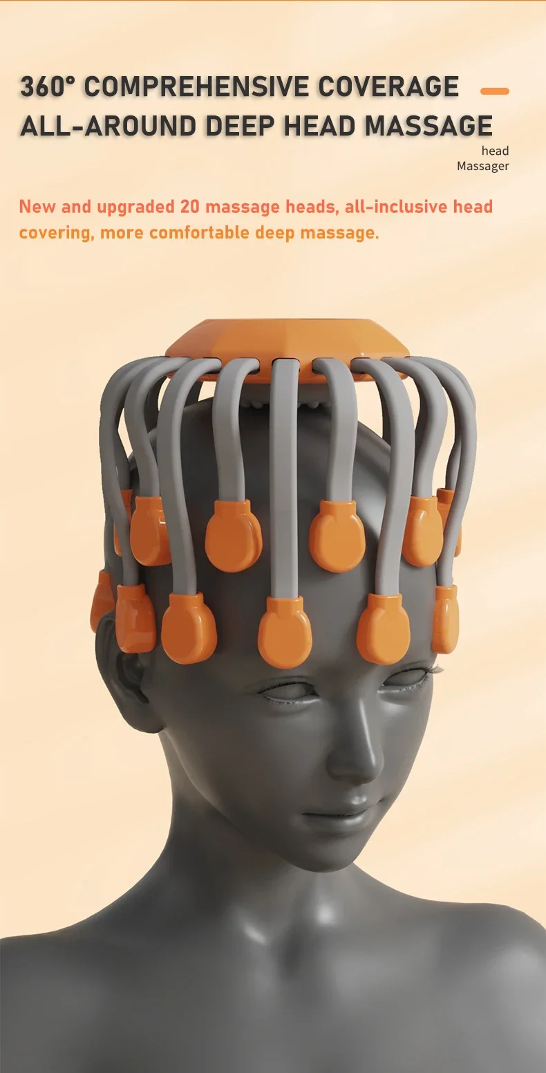 20Massage Heads Orange Scalp Head Massager Red Light Vibrator Octopus Scratcher For Relaxation Stress Migraine