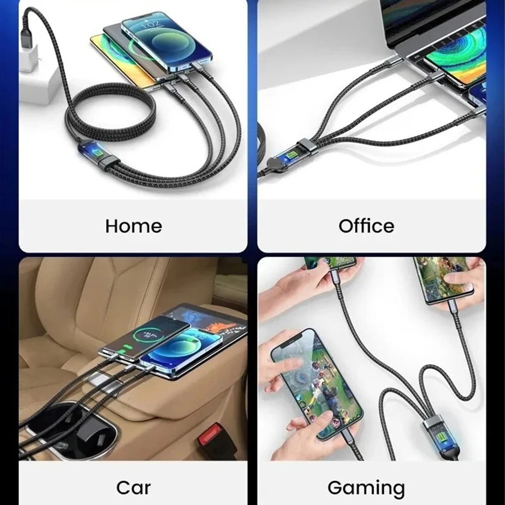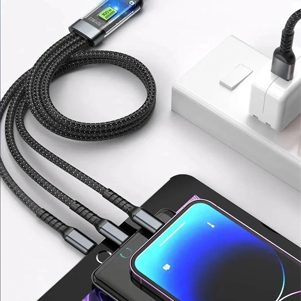 3-in-1 100W Fast Charging Cable USB To Type-C Micro Fast Charger Cable PD For iPhone 1615 14 13 Samsung S23 Xiaomi Huawei Lamp