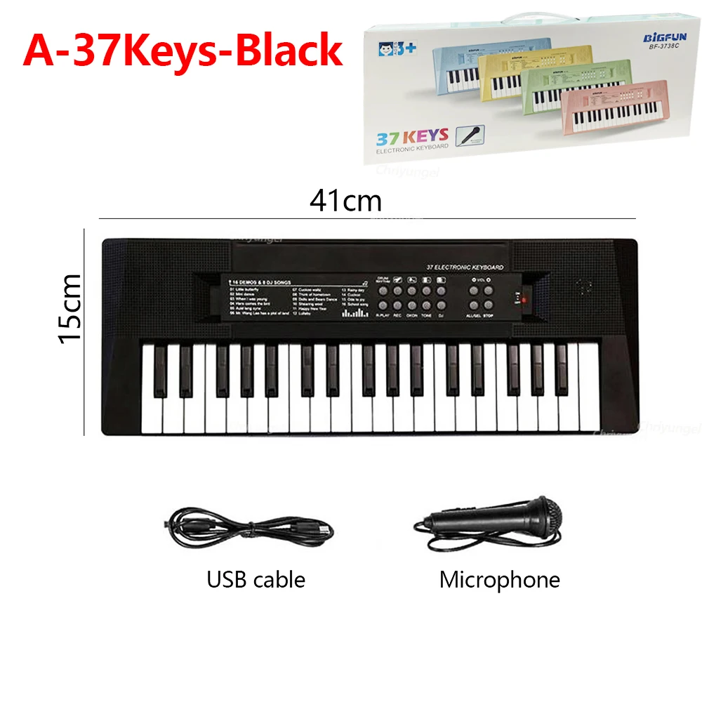 1. The A-37Keys piano: With microphone, this electronic piano keyboard is equipped with a complete 37 key keyboard, built-in 16 demonstration tracks, 8 dynamic songs, speakers and microphone. Children can play and sing to music with a microphone. Cultivate children's musical talent and children's stage performance from an early age.