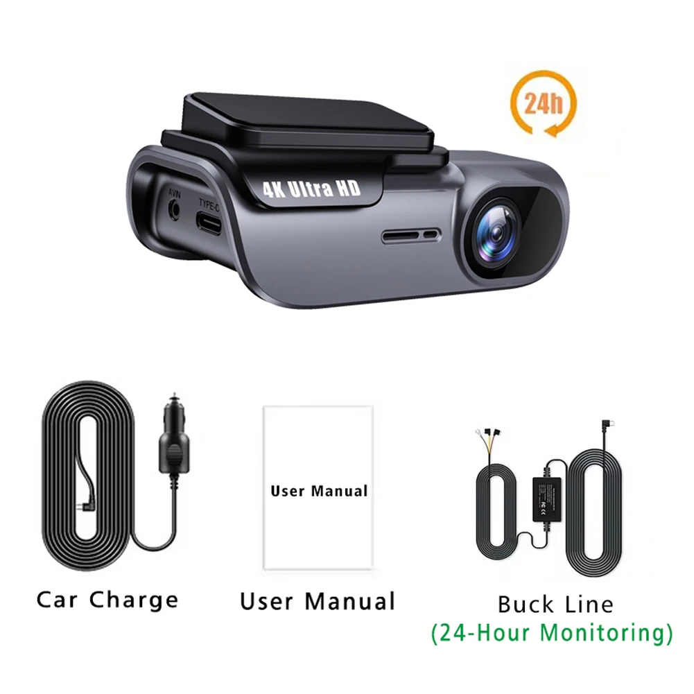 4K Car Dash Camera with GPS Wi-Fi Dash Cam UHD Recording Video Recorder 24H Parking Monitor Driving Vehicle Cam 170° Wide Angle