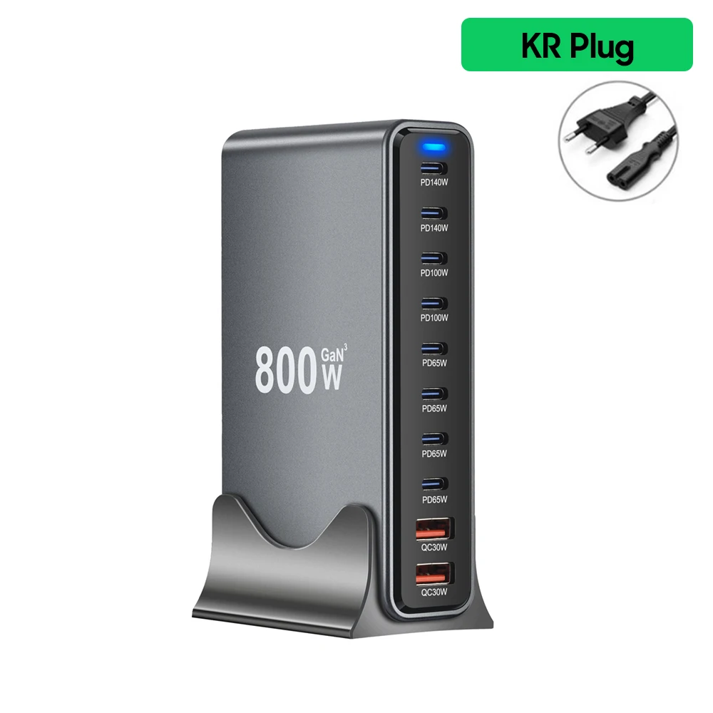 800W GaN Charger USB C Fast Desktop 10-port USB Type C PD3.1 Charger Fast Charging for iPhone 16 15 14 Samsung S24 Xiaomi Laptop
