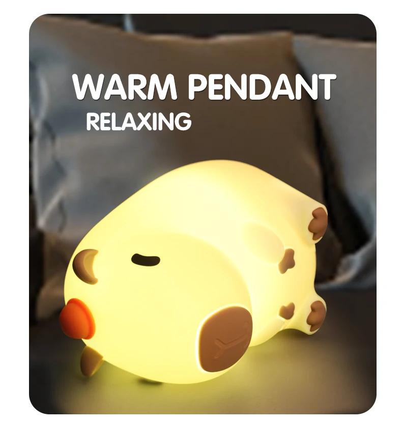 This night light is meticulously crafted in the shape of an adorable capybara. The soft silicone material gives it a lifelike texture, making it not only a functional lighting device but also an eye – catching piece of decor. Its cute and friendly appearance is sure to capture the hearts of kids and adults alike. Whether placed on a bedside table, a bookshelf, or in a nursery, it will instantly become the focal point of the room.