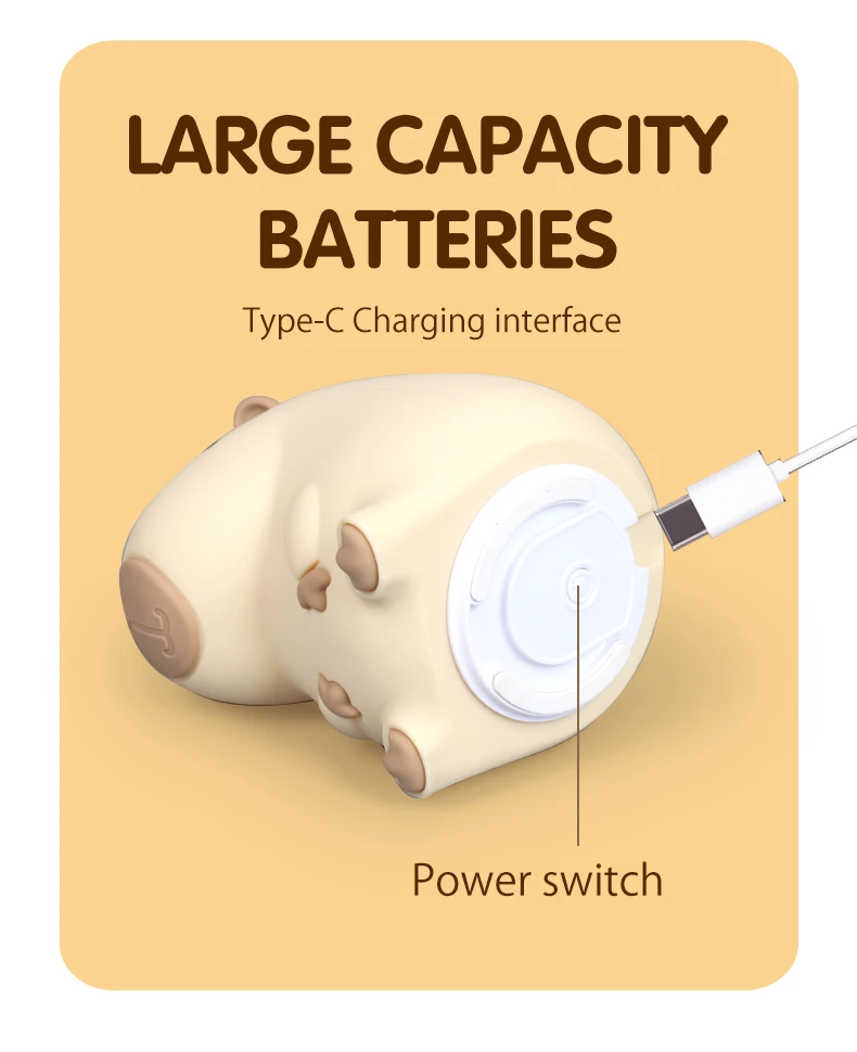 Are you in search of a unique and charming night light to illuminate your child's bedroom or add a touch of coziness to your living space? Look no further! Our USB – rechargeable capybara – shaped pat – on night light is the perfect solution.