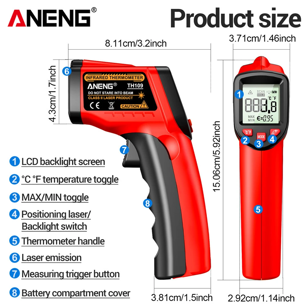 5.Wide Temperature Range: With a measuring range of -50℃ to 400℃ (-58℉ to 752℉), this heat gun allows for rapid and accurate temperature assessments across a wide spectrum, suitable for various tasks.