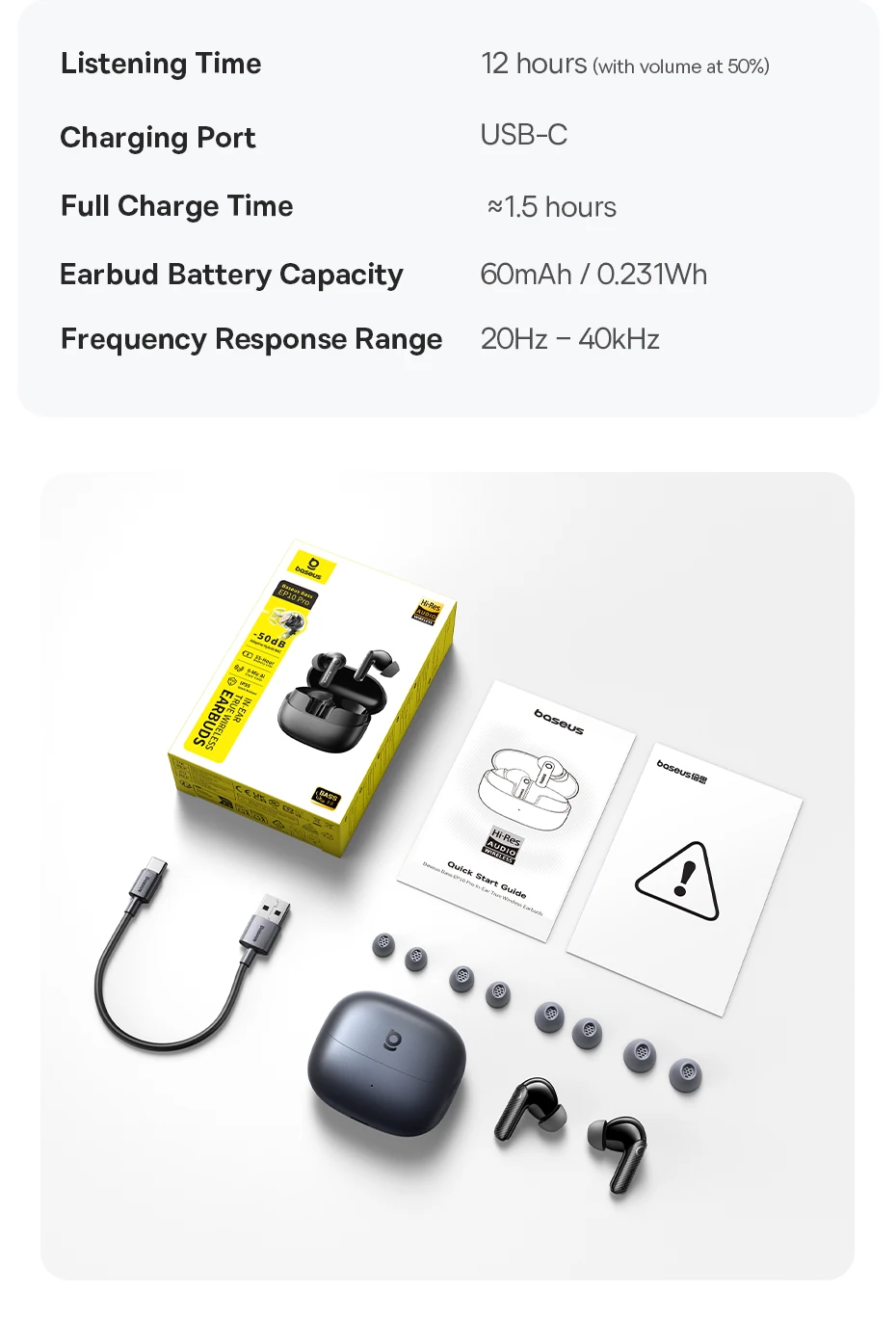 Bluetooth 6.0 and Baseus DCLL technology, ensuring a fast,stable wireless connection.