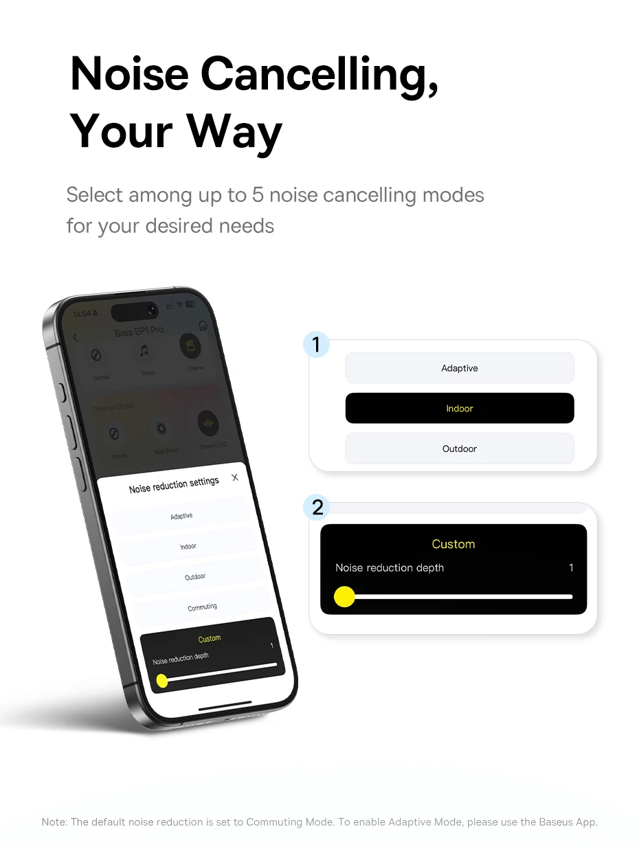 5 ANC modes in the Baseus App for personalized quiet anywhere you go
