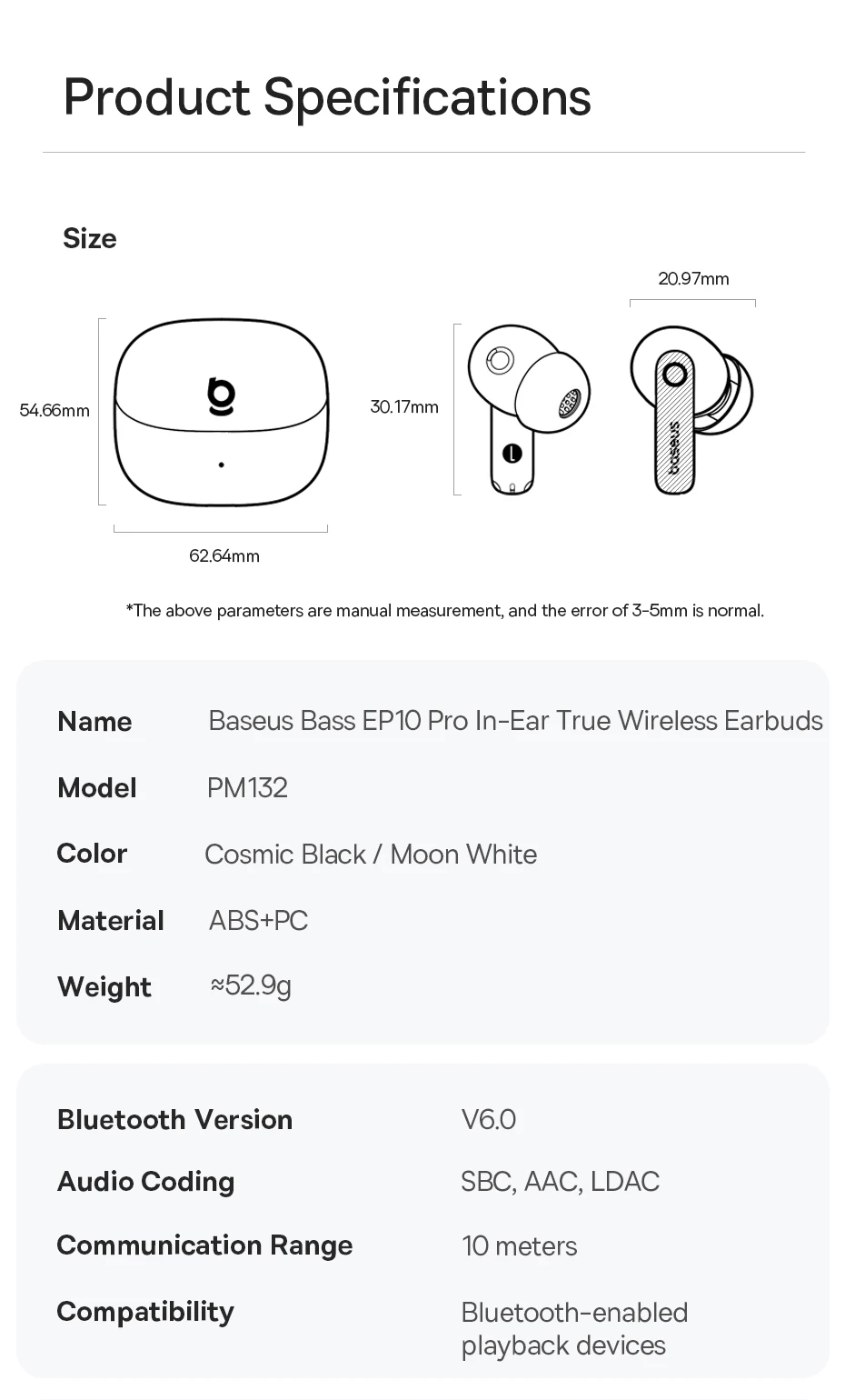 Name: Baseus Bass EP10 Pro In-Ear True Wireless Earbuds