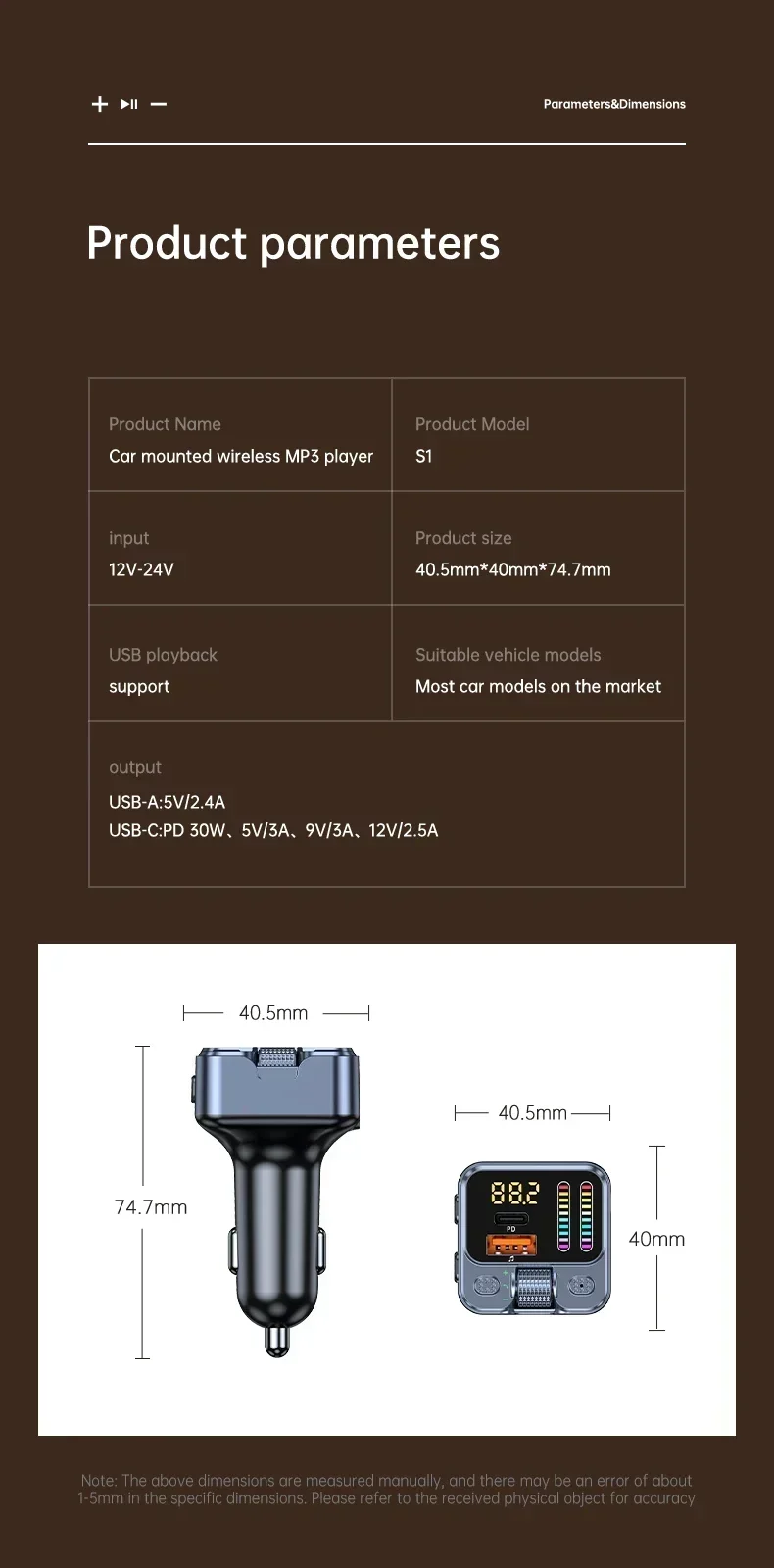 Product size: 40.5mm * 40mm * 74.7mm