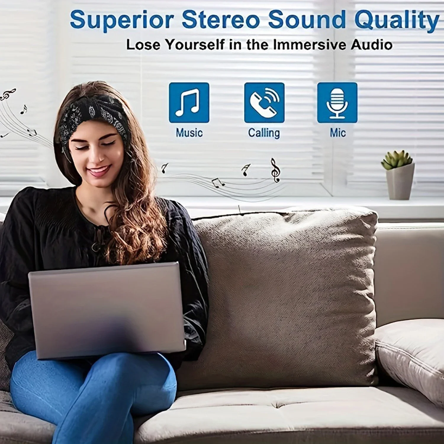 Wireless Bluetooth Earphone Headband Elastic Sports Music Headphones Eyemask Soft Comfortable with Microphone for Running Yoga