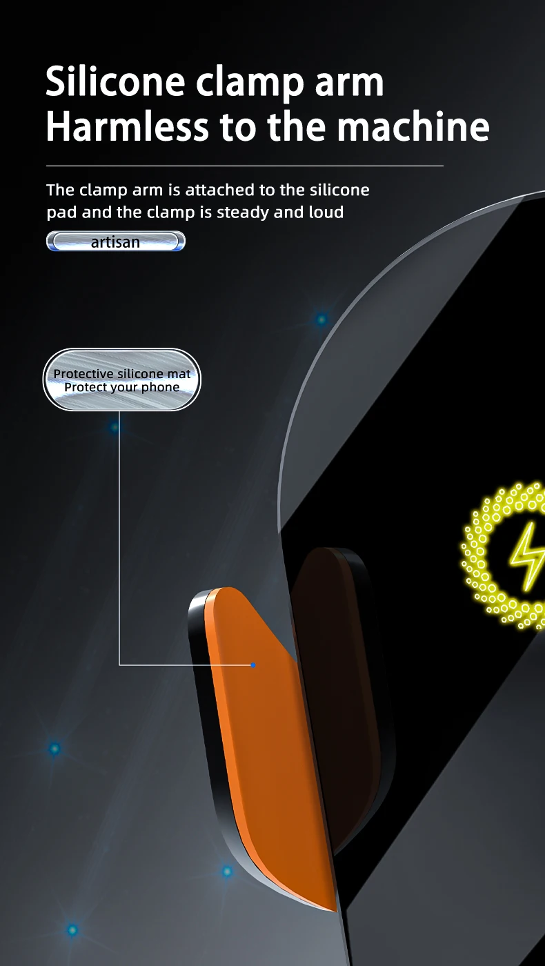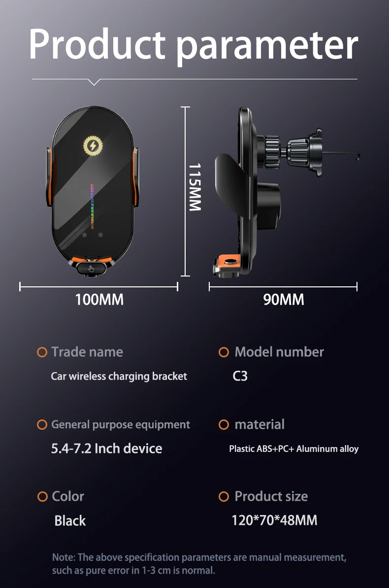【 Upgraded Intelligent Auto-Clamping 】The wireless car charger’s arms and foot will auto-opening after connecting to power, and will auto clamping firmly once place your phone in, don’t need to manually adjust the foot to clamping the phone.