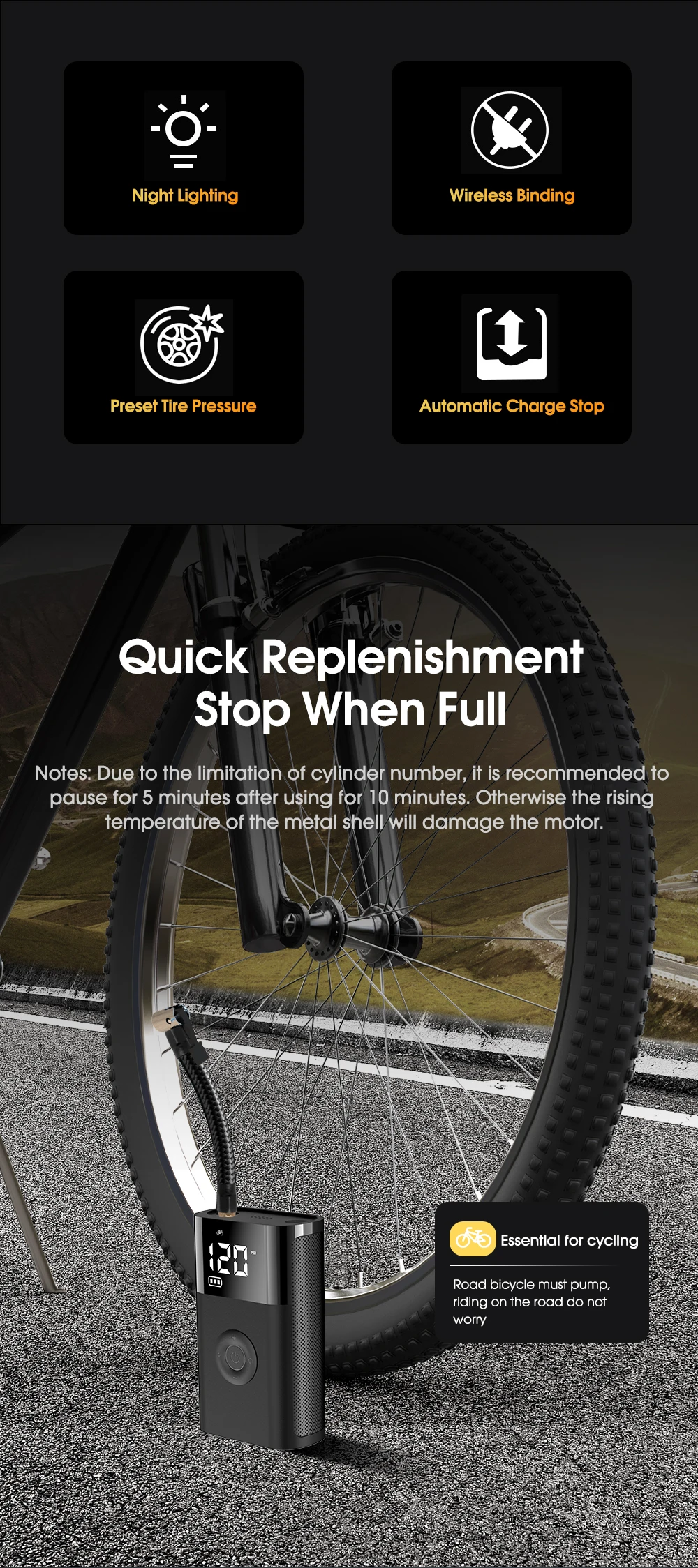 CARSUN Portable Inflator Compressor Pump With LED Lamp For Car Motorcycle Bicycle Tyre Balls Wireless Electric Car Air Tire Pump