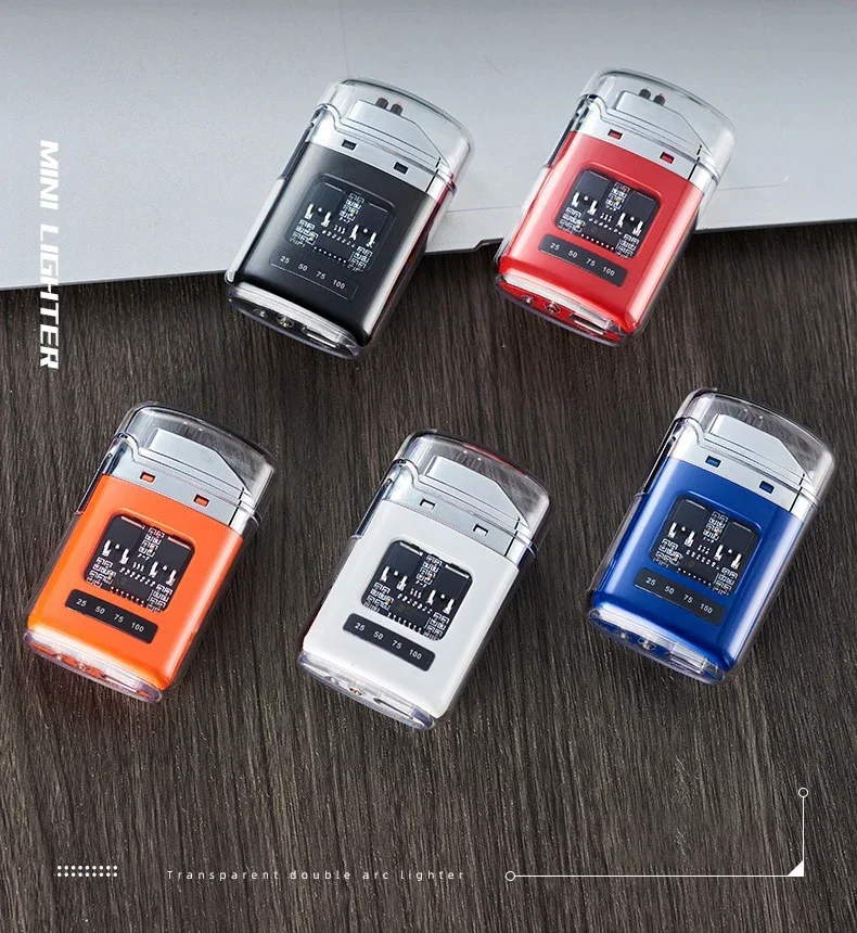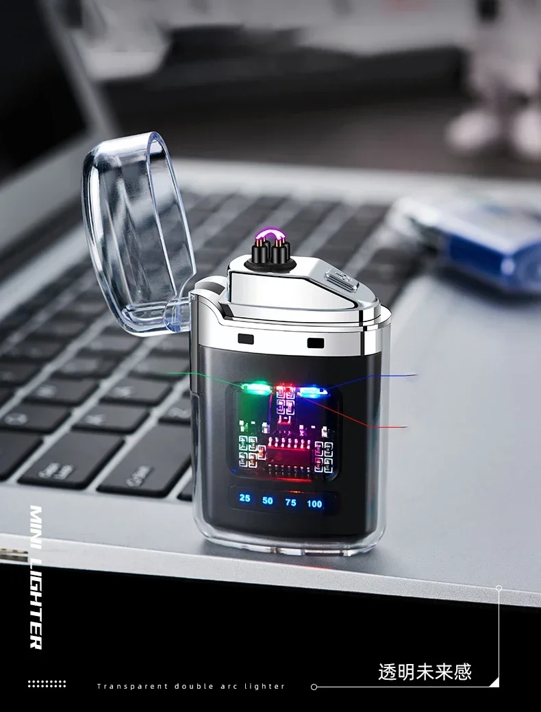 Electric Double Arc USB Rechargeable Lighter Plasma Outdoor Windproof Battery Display Type-C Smoking Accessories Men’s Gifts