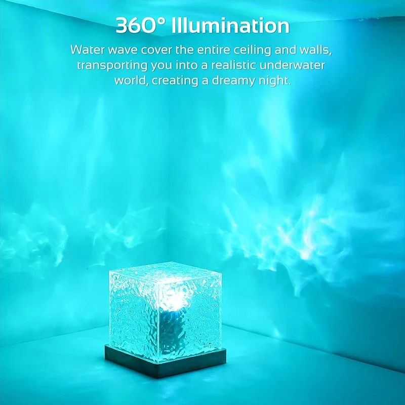 16 COLOR CRYSTAL LAMP: RGB table lamp maps 3D visual flame/aurora kinetic patterns on the wall under the effect of colored lights. The combination of elegant appearance and shining light expresses the unique connotation and artistic temperament of a lamp, creating a gorgeous visual feast of light and shadow