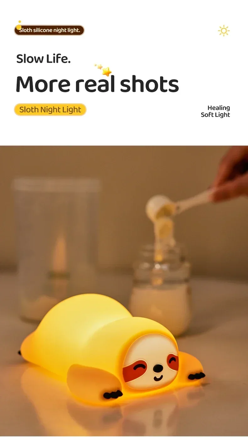 Children's room: Cute sloth shape attracts children, soft light accompanies children to sleep without fear of darkness.