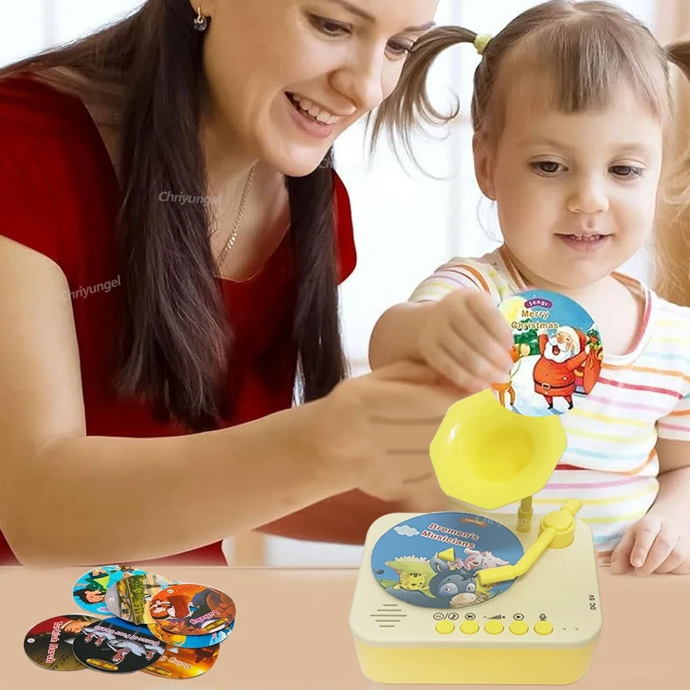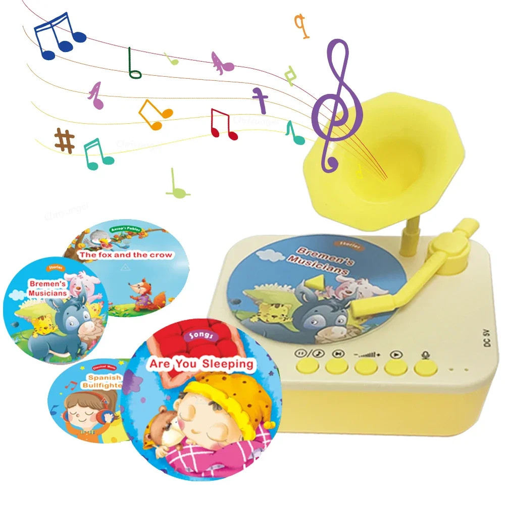 Kids Story Player Gramophone Music Toy with 93 Cards for Early Education Toddler Record Player Phonograph Learning Toys Gifts