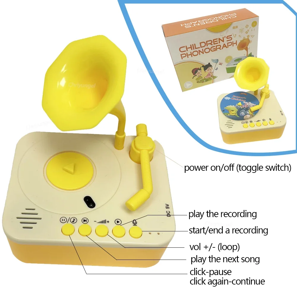 3.   Children's Music Player: This Kids Gramophone is more than just a record player.  your child can enjoy songs, stories, and words while developing important skills such as coordination, memory, and attention.  It's an interactive educational tool that provides a hands-on learning experience.