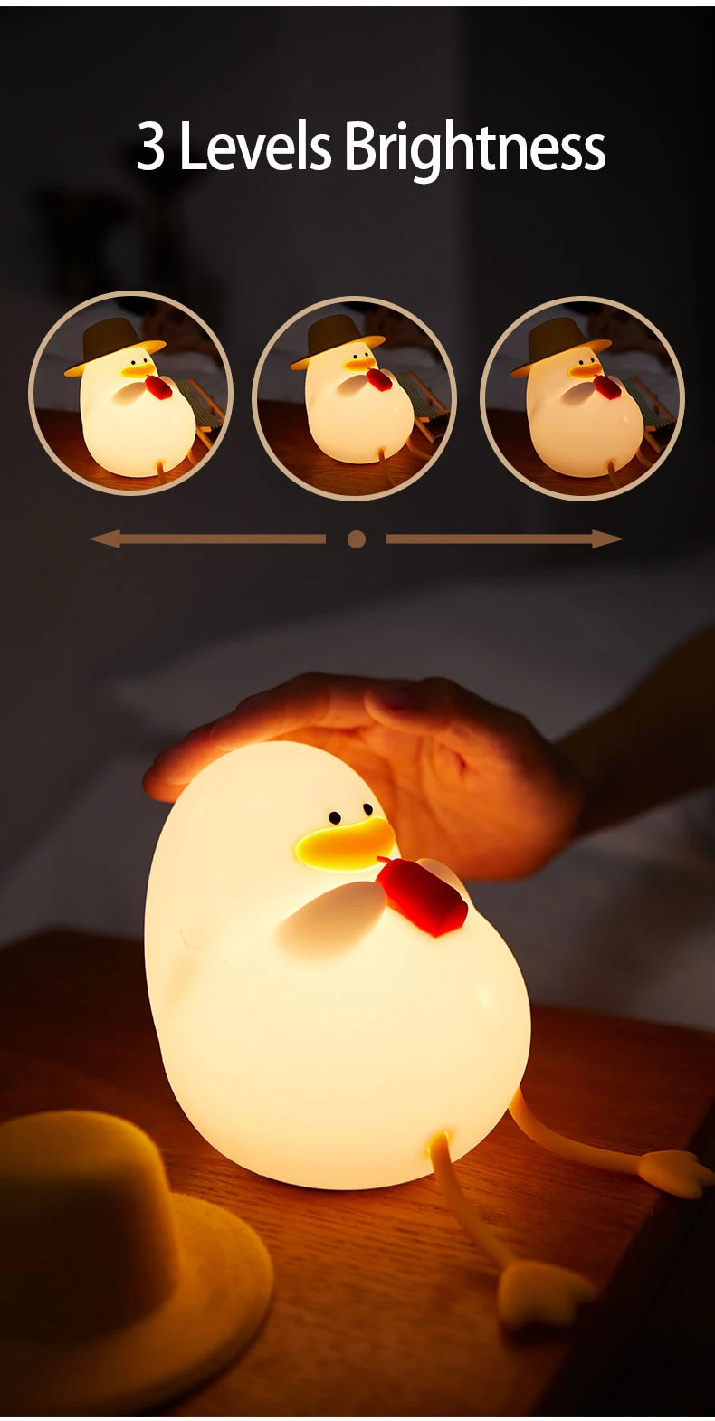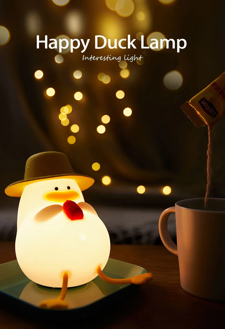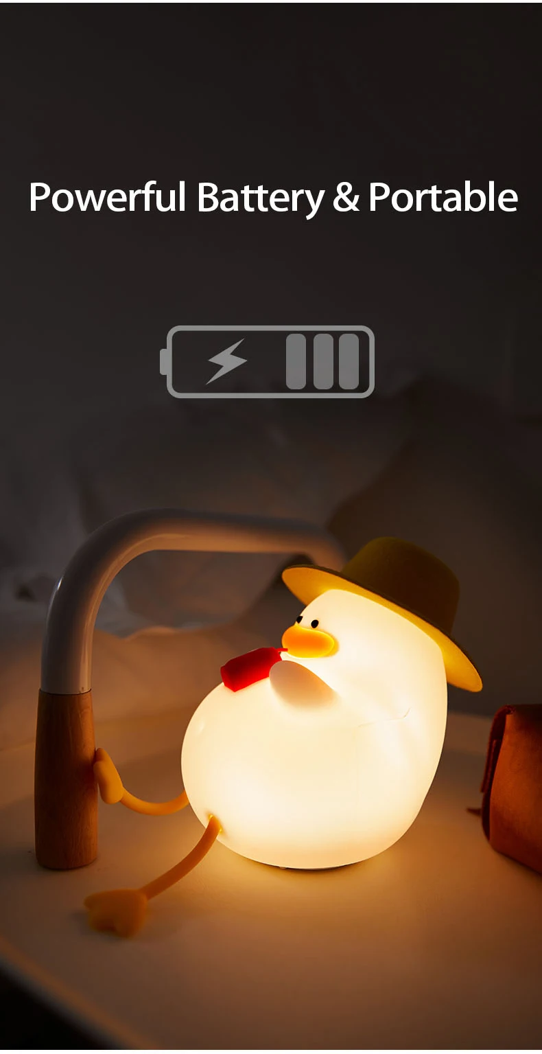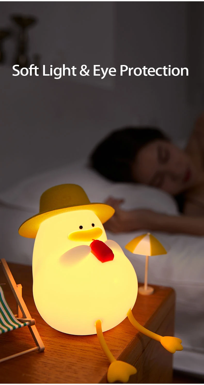 LED Night Light Rechargeable Duck Night Lamp Silicone Dimmable Lamps Bedside Nightlights Room Decor Kids Gift