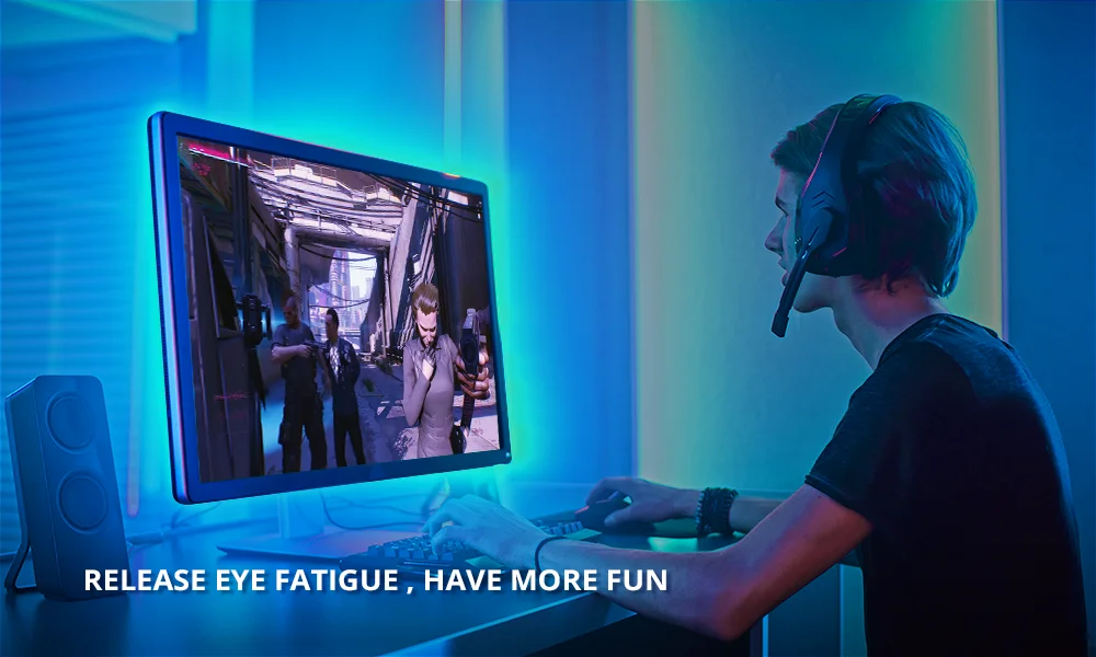 USB powered light strip can be easily installed behind TV. Unique stronger foam adhesive and buckle clips make sure the led strip better fixation on your TV.