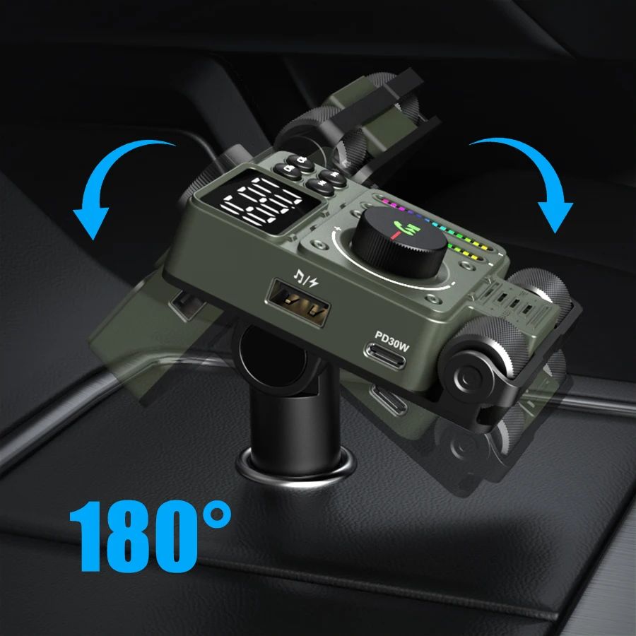 LENCENT FM Bluetooth 5.3 Transmitter for Car Adjustable Treble and Bass Sound Music Player Supports PD30W Fast Charging Car Kit