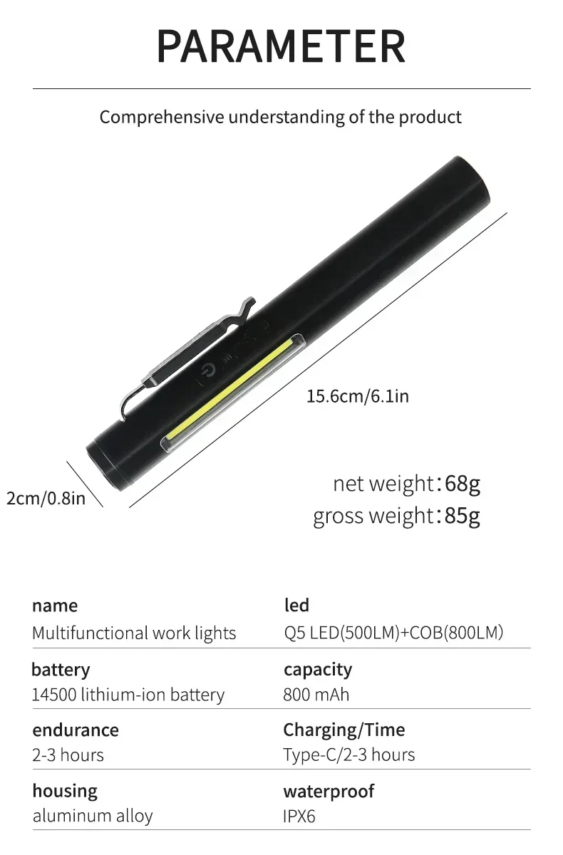 * Use battery model: Built in 14500 500mAh