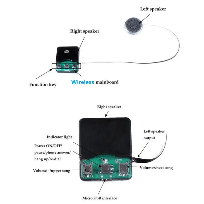3. After pairing with the handheld device, you can short press to pause or play when the music is being played. In calling status, you can short press to answer the phone, long press to refuse and quickly double click to dial the latest coming call.