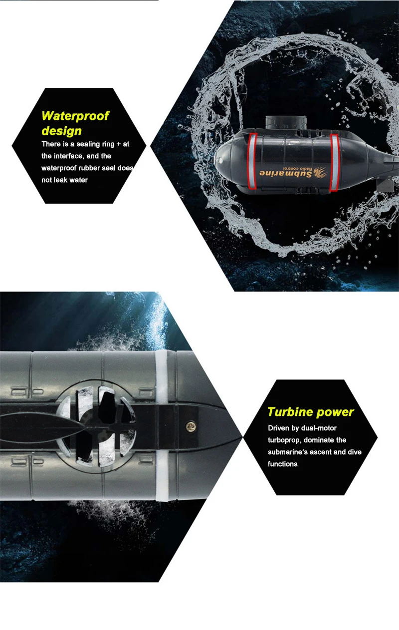 2.Wide Use: The remote control submarine can dive under the instruction of the controller, and can also make exquisite toys and gifts for children.