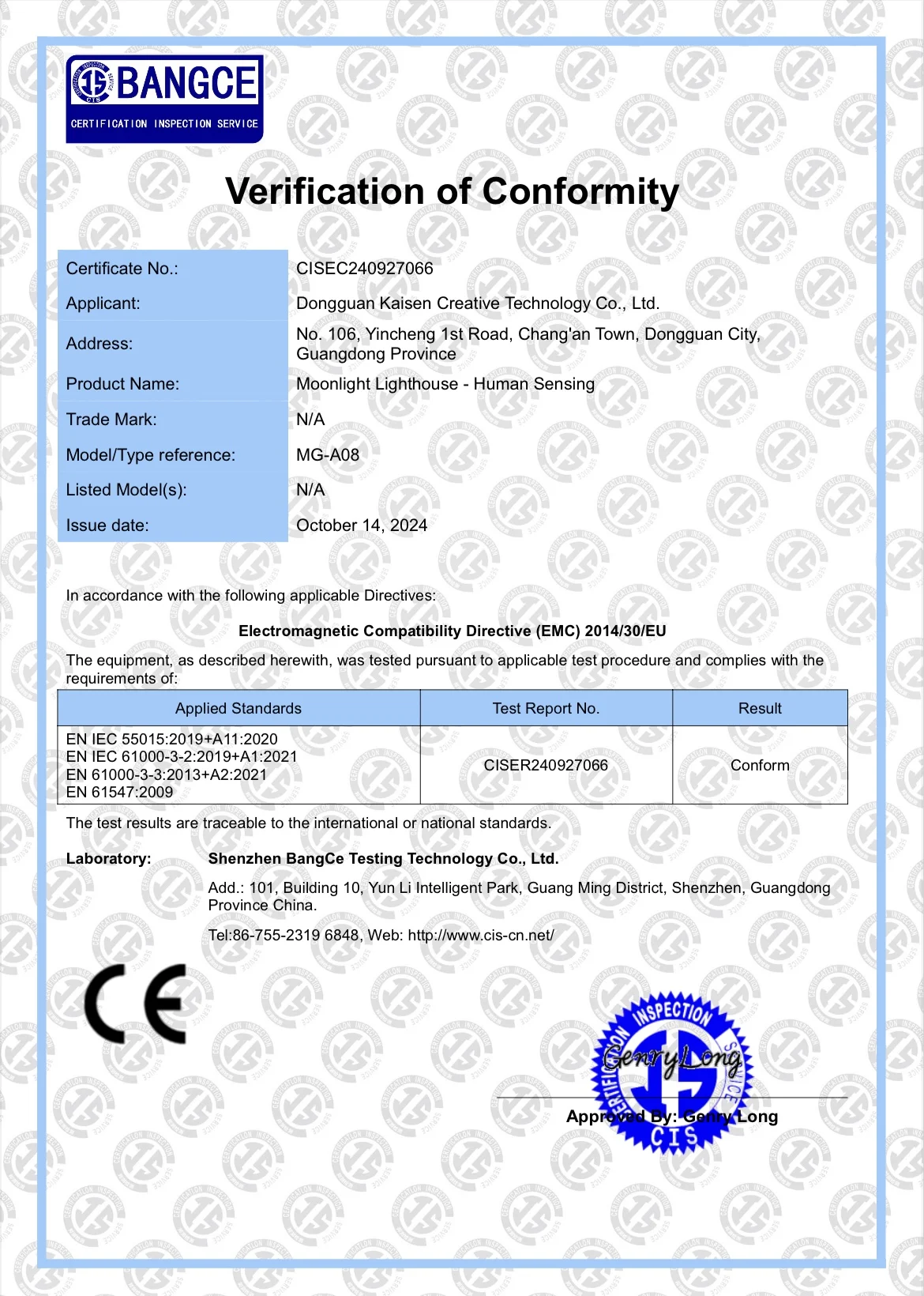 1.5 seconds for 60 seconds.If the person is sensed again within 60 seconds, it will be recalculated for 60 seconds, and the gradient will be extinguished for 1.5 seconds after 60 seconds.