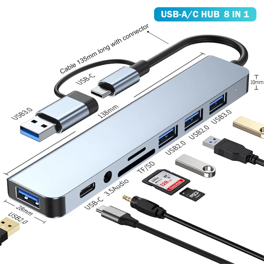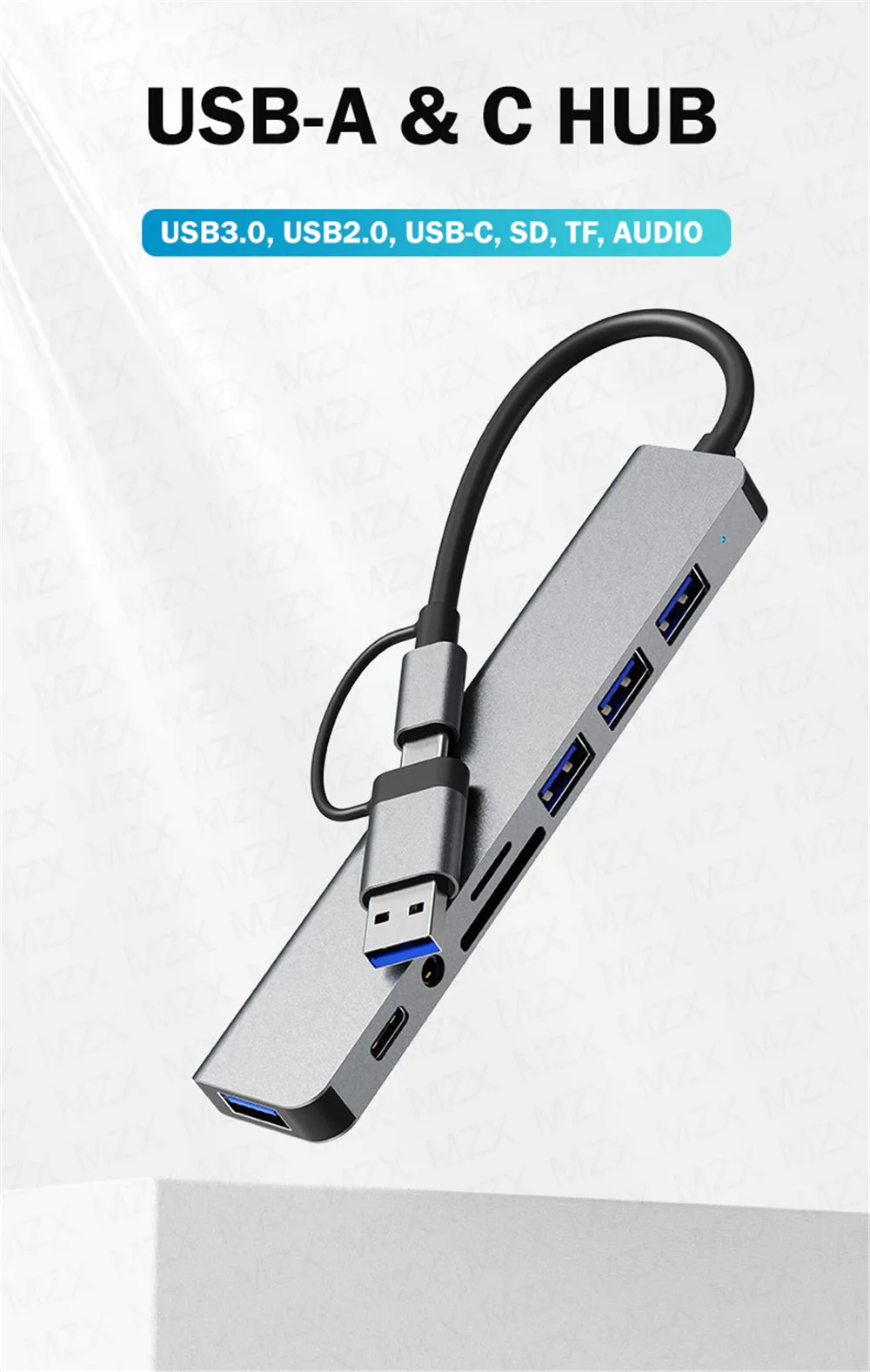 MZX 8 in 1 USB Hub Type A C 3 0 Concentrator Docking Station Multi Adapter SD TF Card Reader Audio Multi-hub Dock Splitter Hubs, Multi Multiple Ports Concentrator Extension Extensor Extensior Multi-hub HDMI-Compatible Rj45 SD TF Card Reader USB 3.0 2.0 USBC Type-C TypeC USB-C PC Desktotps Notebook Computer Laptop Accessories for HDMI Macbook Pro Mac Air Thunderbolt 3 4 Nintendo switch stream deck macbook air pro m1 m2 steamdeck play station 4 mac mini usb c to hdmi splitter