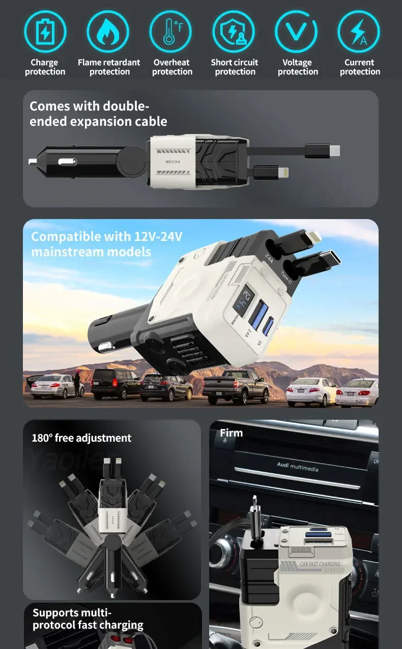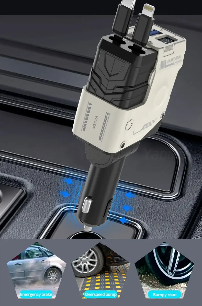 • 4-in-1 Functionality :This versatile product is a 4-in-1 USB C-cable, serving as a charger, cigarette lighter, and more, catering to various needs.