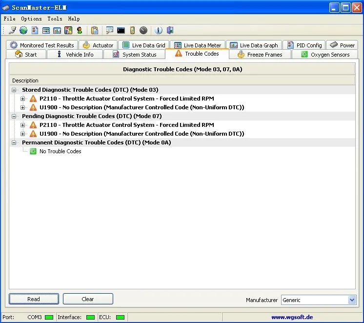 1.Read diagnostic trouble codes, both generic and manufacturer-specific, and display their meaning (over 3000 generic code definitions in the database).