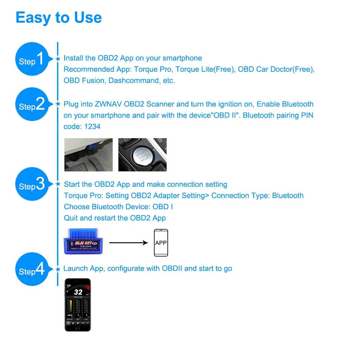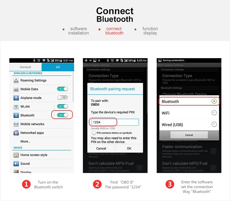 3.Connection Password: 1234 or 0000