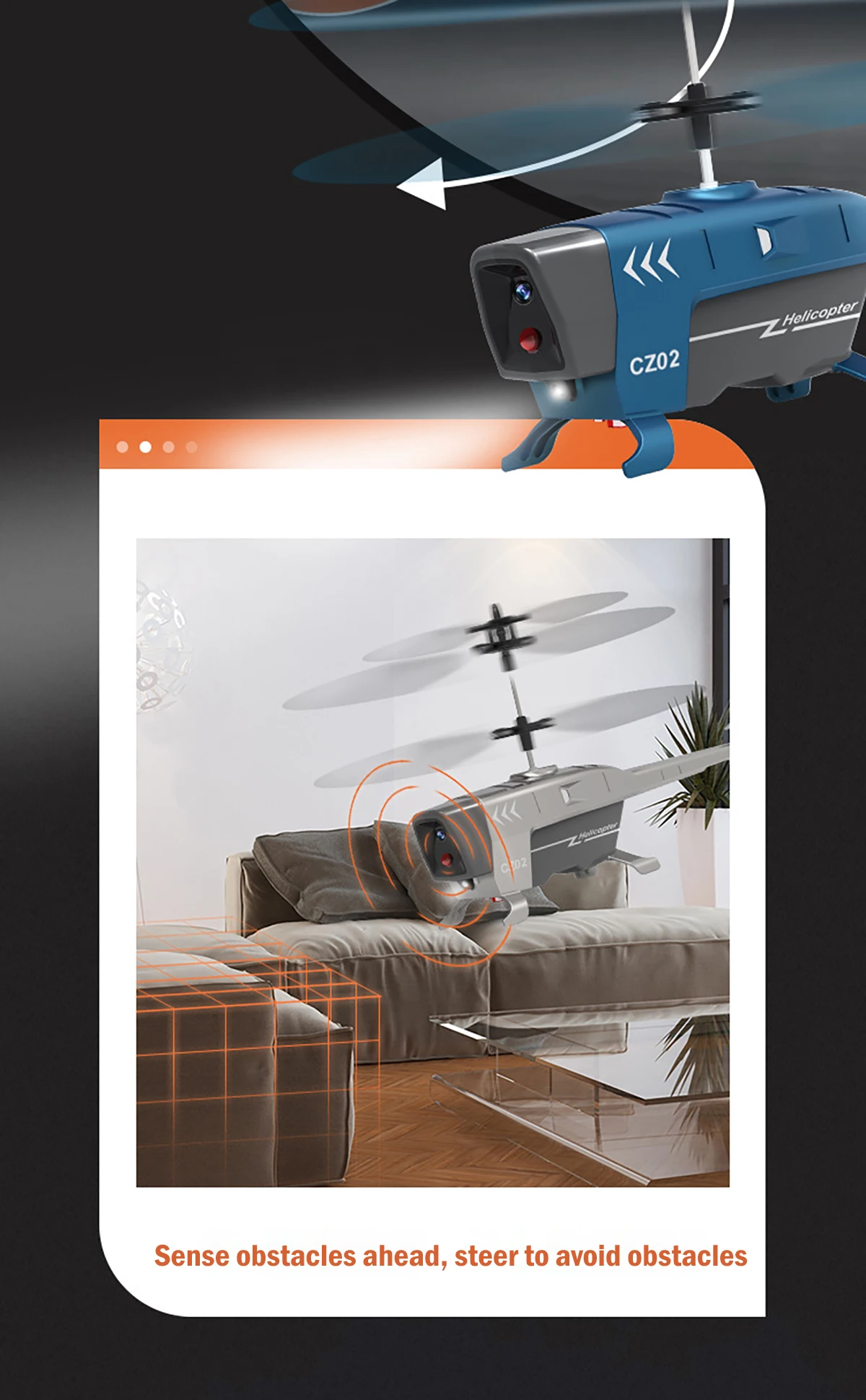 Remote control helicopter with obstacle avoidance function