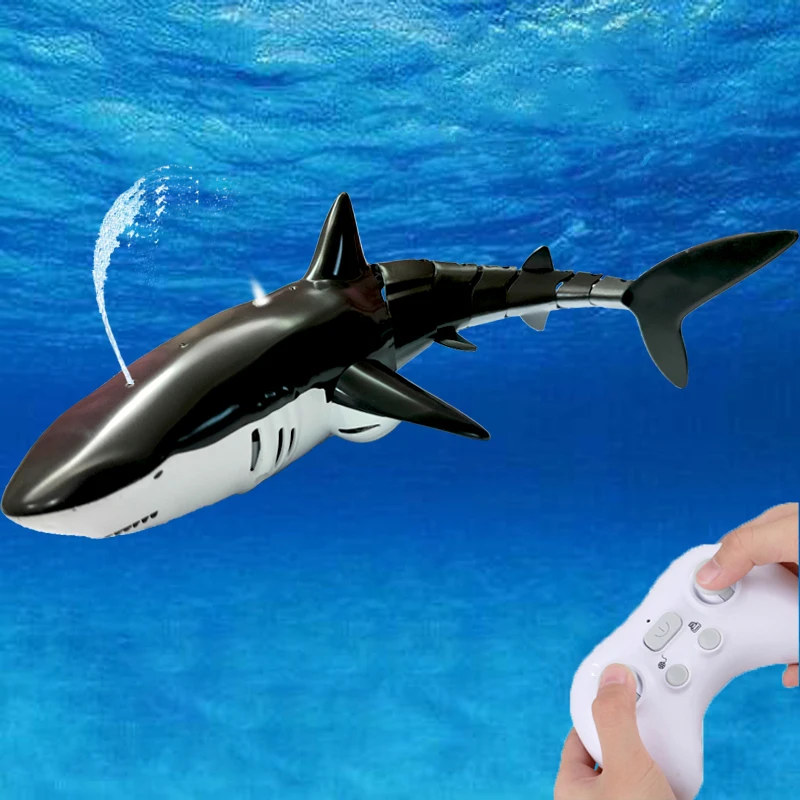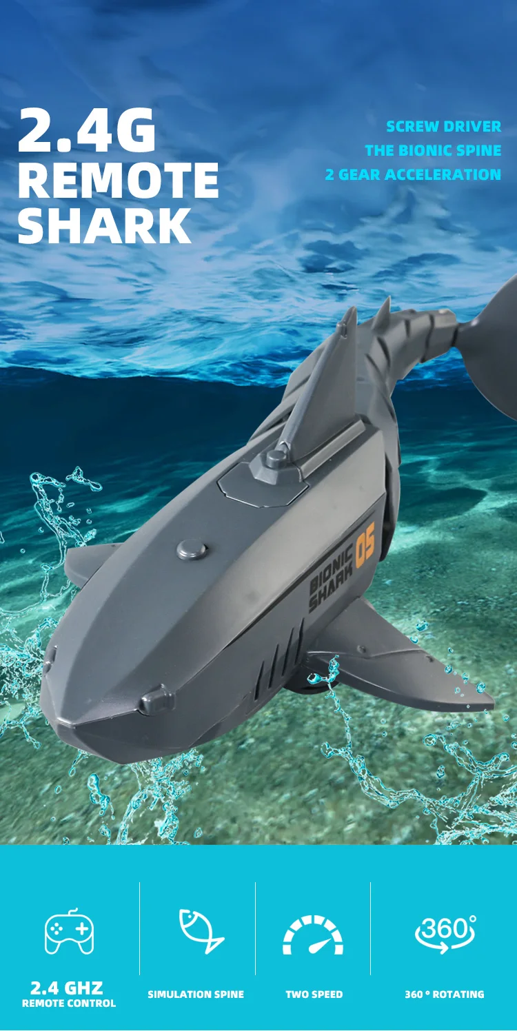 2.4G remote control shark main function: can many people compete at the same time (no interference), imitate the swimming action of fish. Swimming on the water.