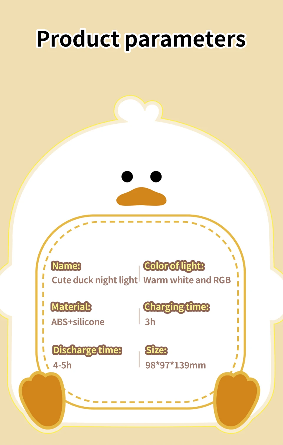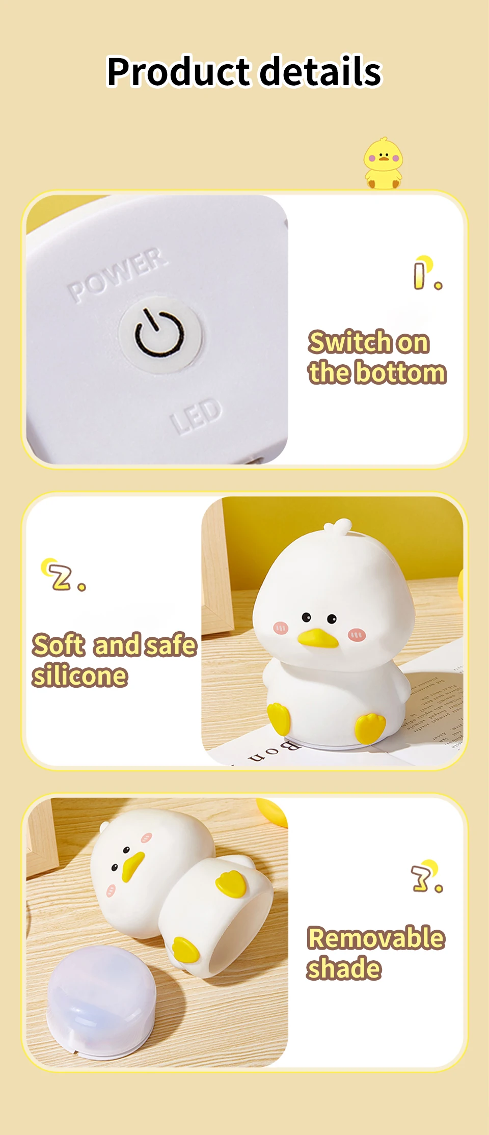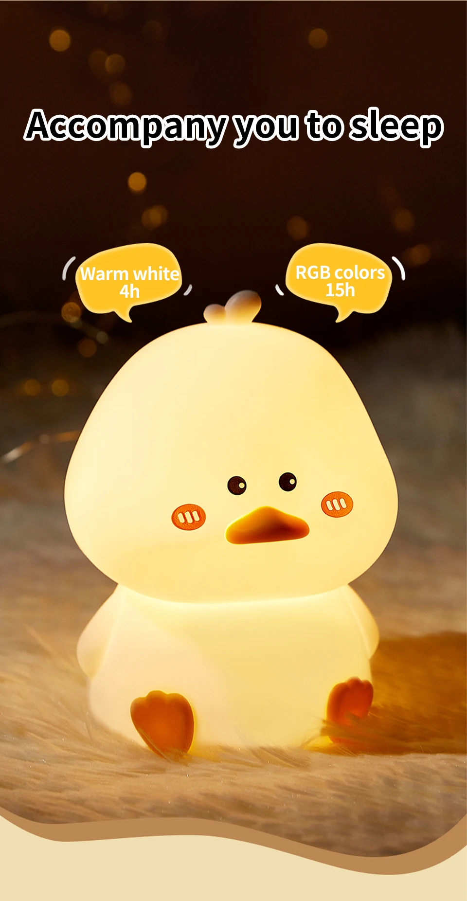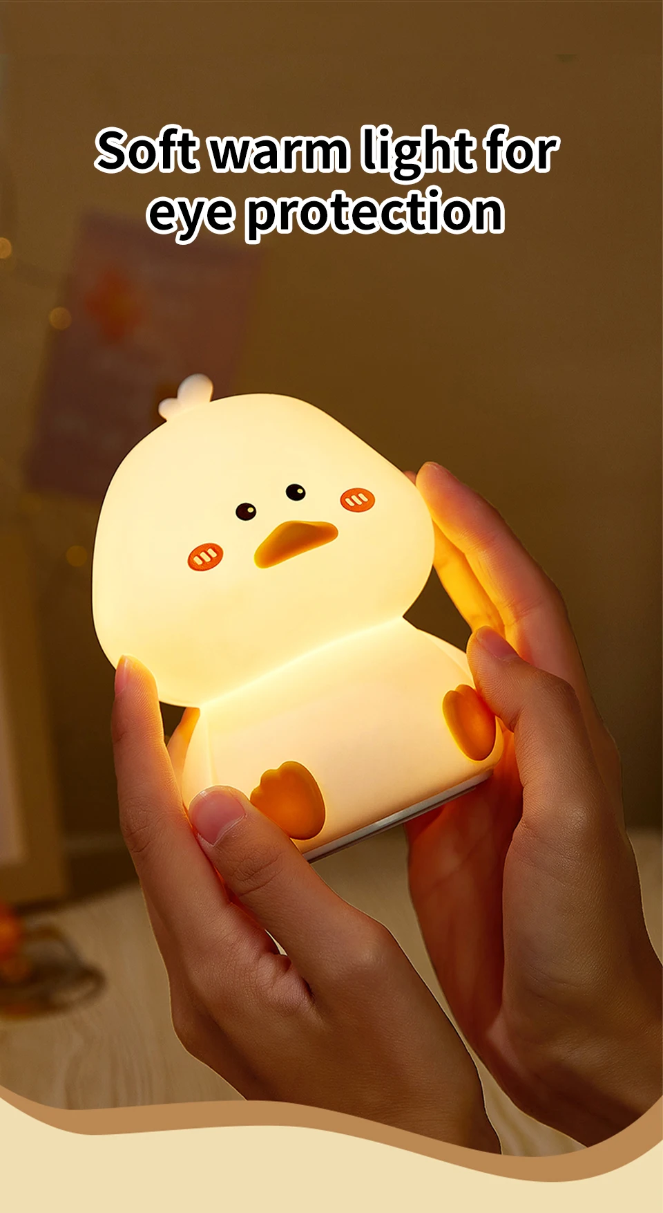 Rechargeable LED Night Light Cartoon Cute Duck Patting Silicone Lamp Bedroom Decor Sleeping Mood Light Children Gift Nightlight