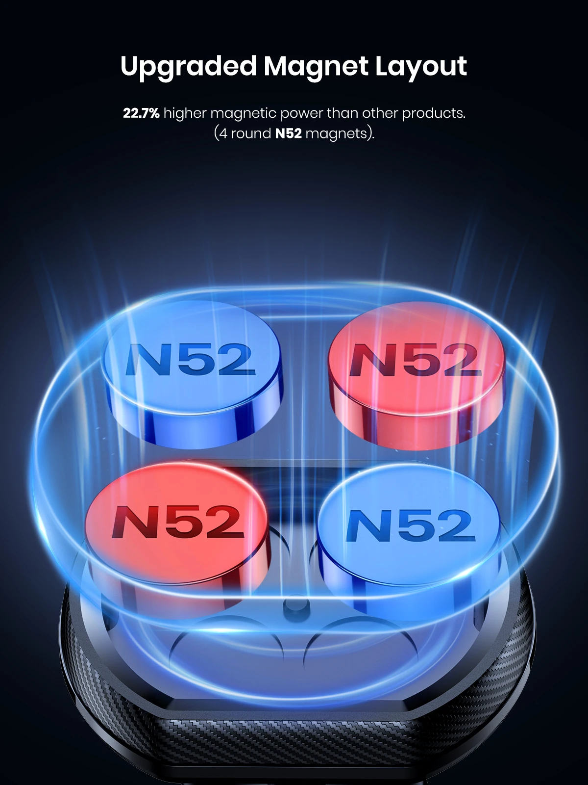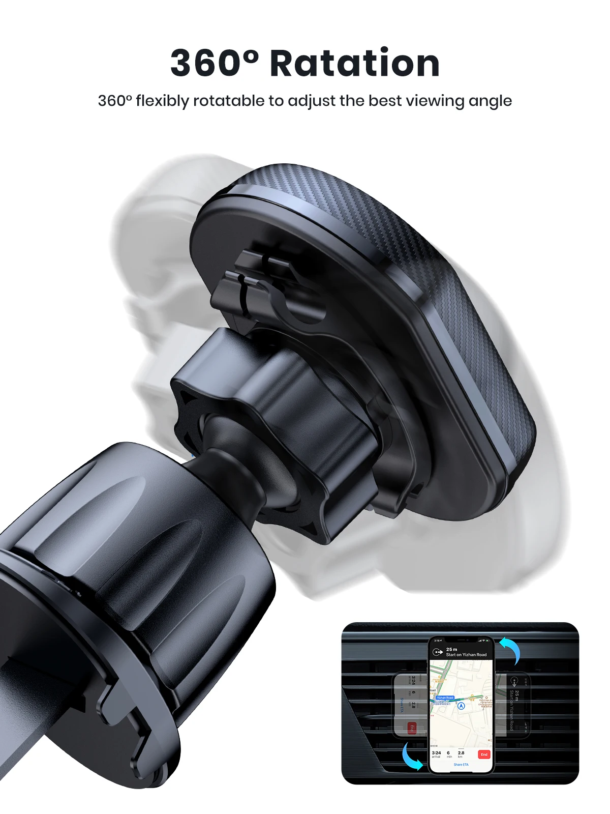 👍10X EASIER USING: This magnetic phone holder for cars has no buttons, making it simple to use when compared to the clip phone holder. Magnetic attachment simply place the phone close to the stand base, and it will be rapidly absorbed and securely fastened on the stand with a snap. Even when driving, it may be simply used with one hand.