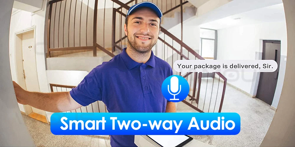 *The doorbell camera provides two-way audio talk all the time. You will have a real-time video talk with whoever in front of the camera on any situation.