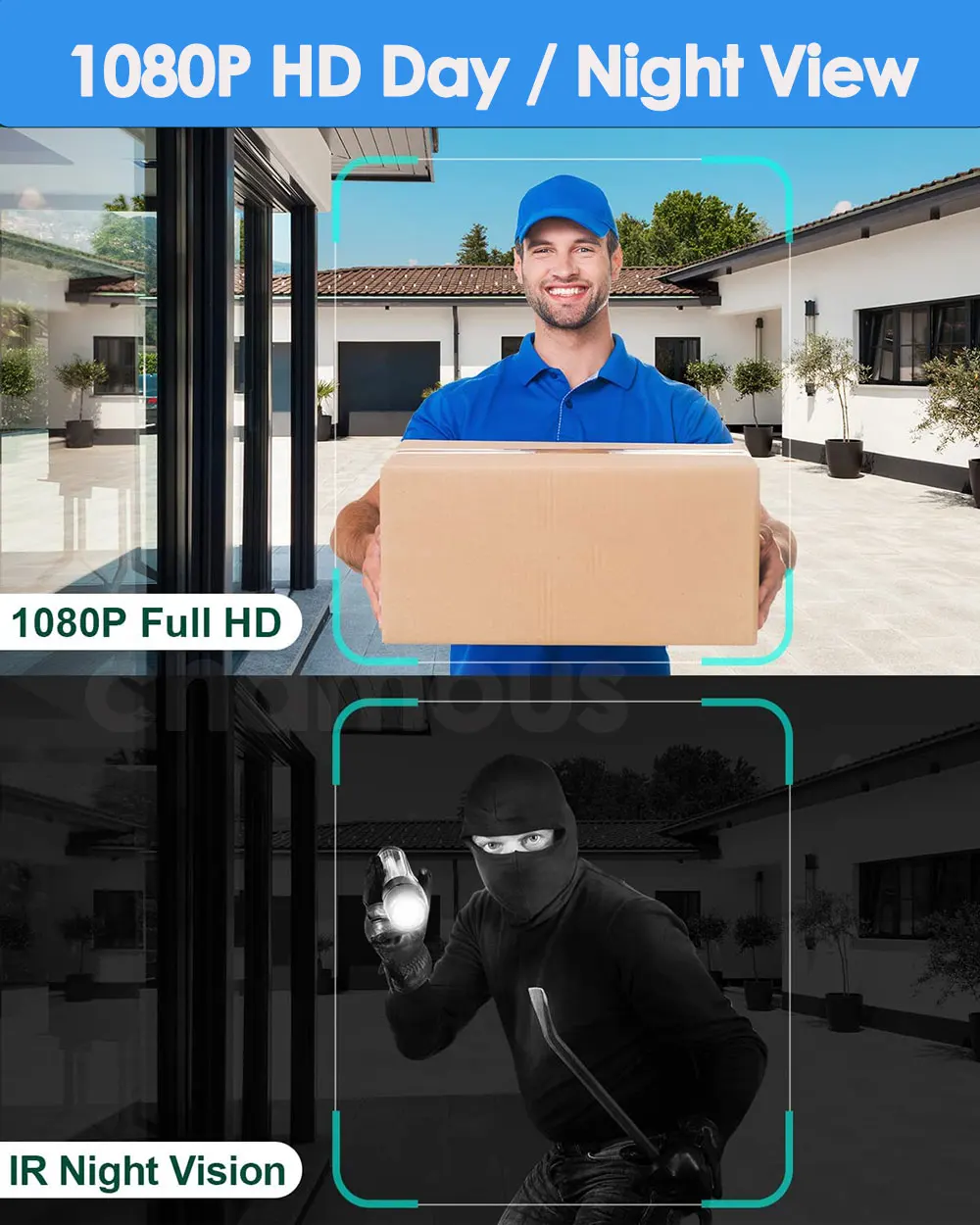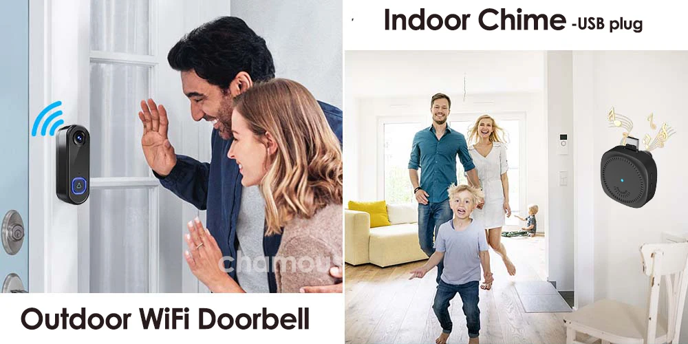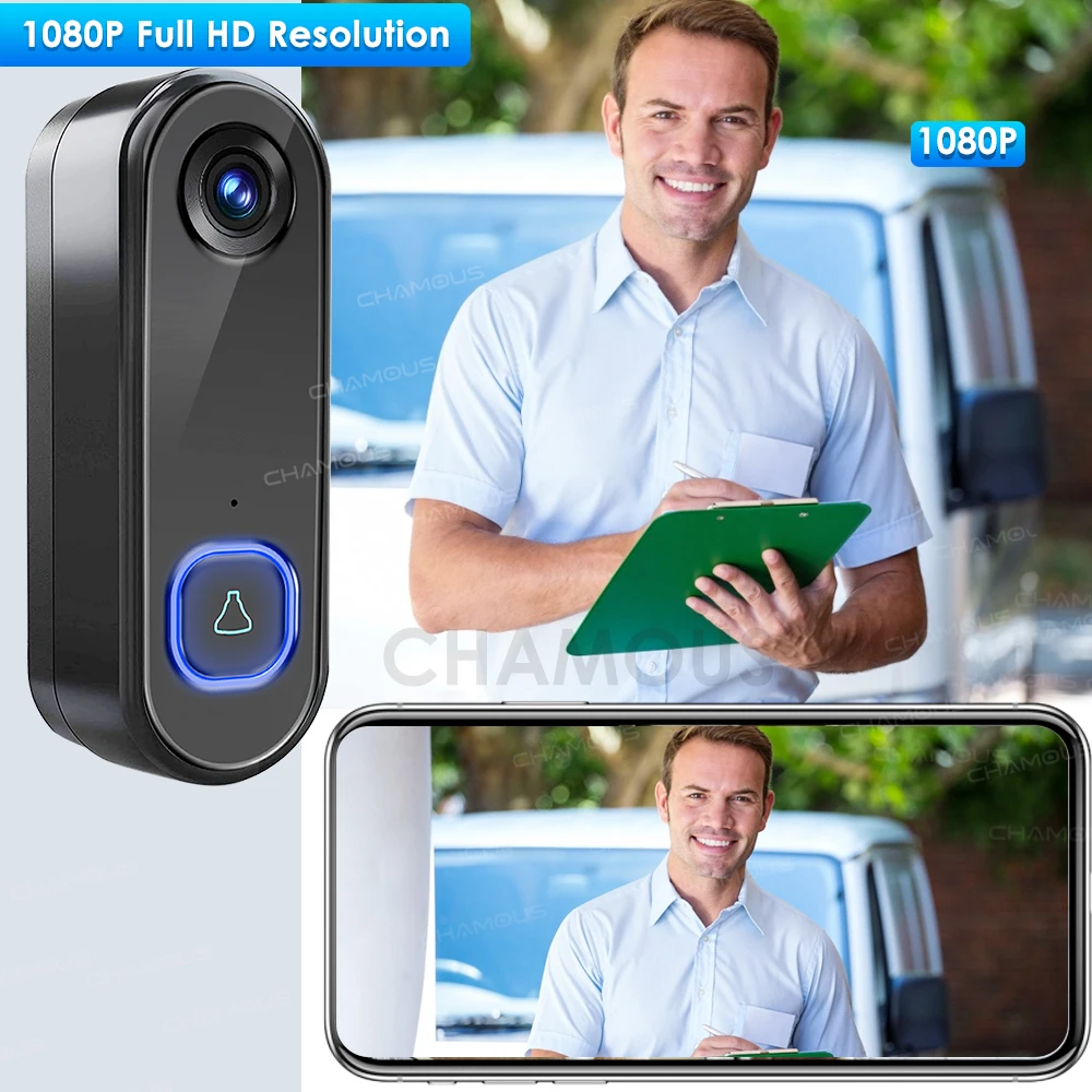 *Chamous wireless doorbell camera uses newest high-end chip and advanced sensor,upgrading door bell to 1080P full HD video quality.