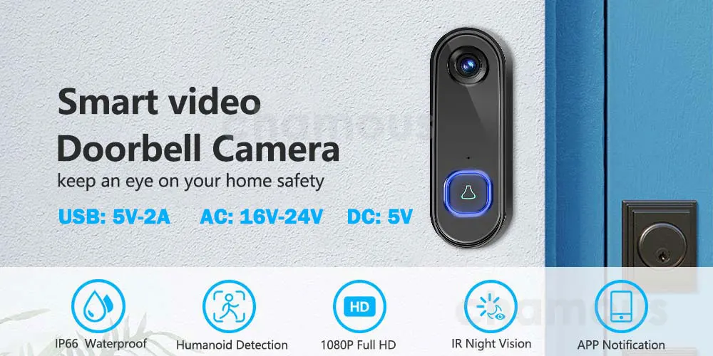See, hear and speak to anyone at your door from anywhere with Chamous Video Doorbell camera