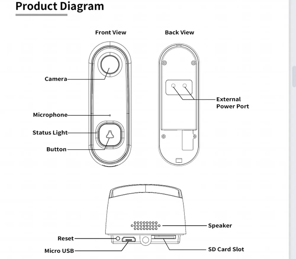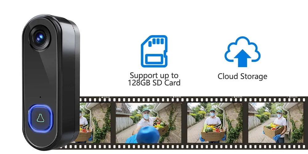 *This WiFi doorbell camera supports Micro SD card storage up to 128GB.