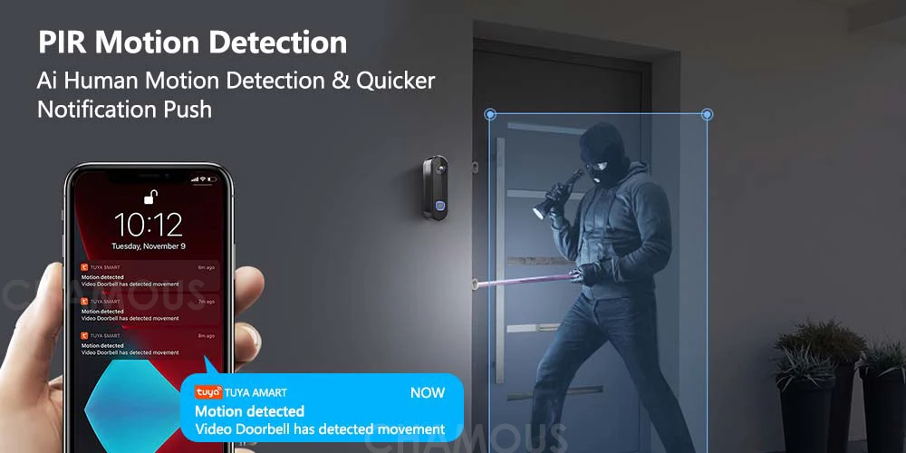 *Support PIR motion detection, when someone hovers at the door, immediately alerts push notifications to the mobile phone.
