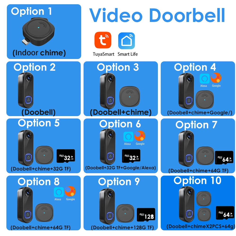 WIFI Doorbell +Indoor Chime+Indoor Chime*2 + 64G SD Card