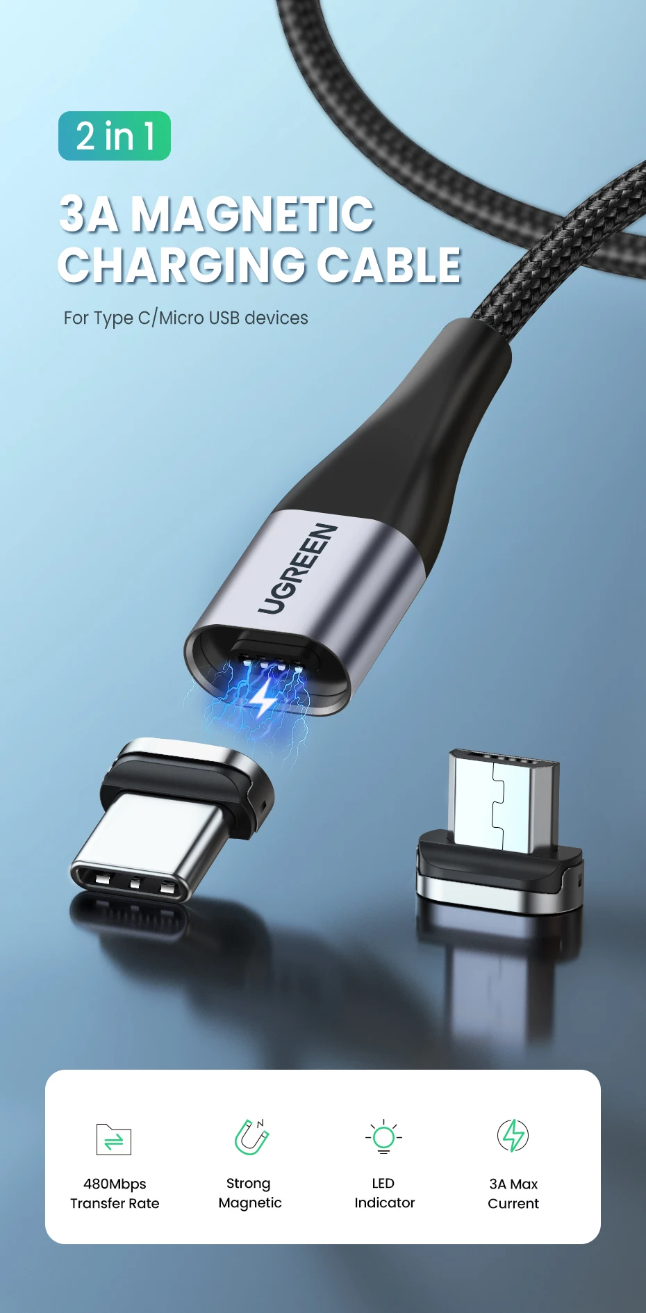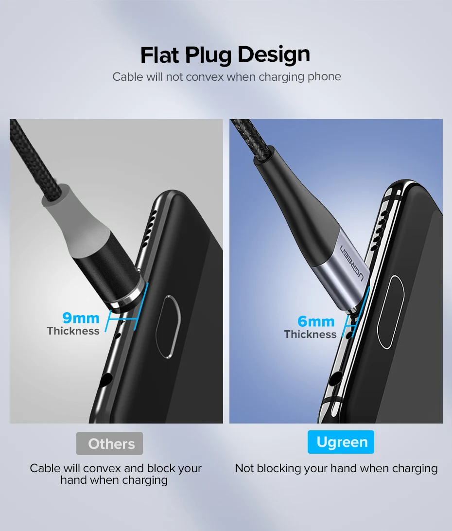 1. UGREEN Magnetic “ Micro Plug ” and “ Type-C Plug ” must be equipped with UGREEN Magnetic Cable, they don't work with other brands of cable, please confirm surely before purchase.