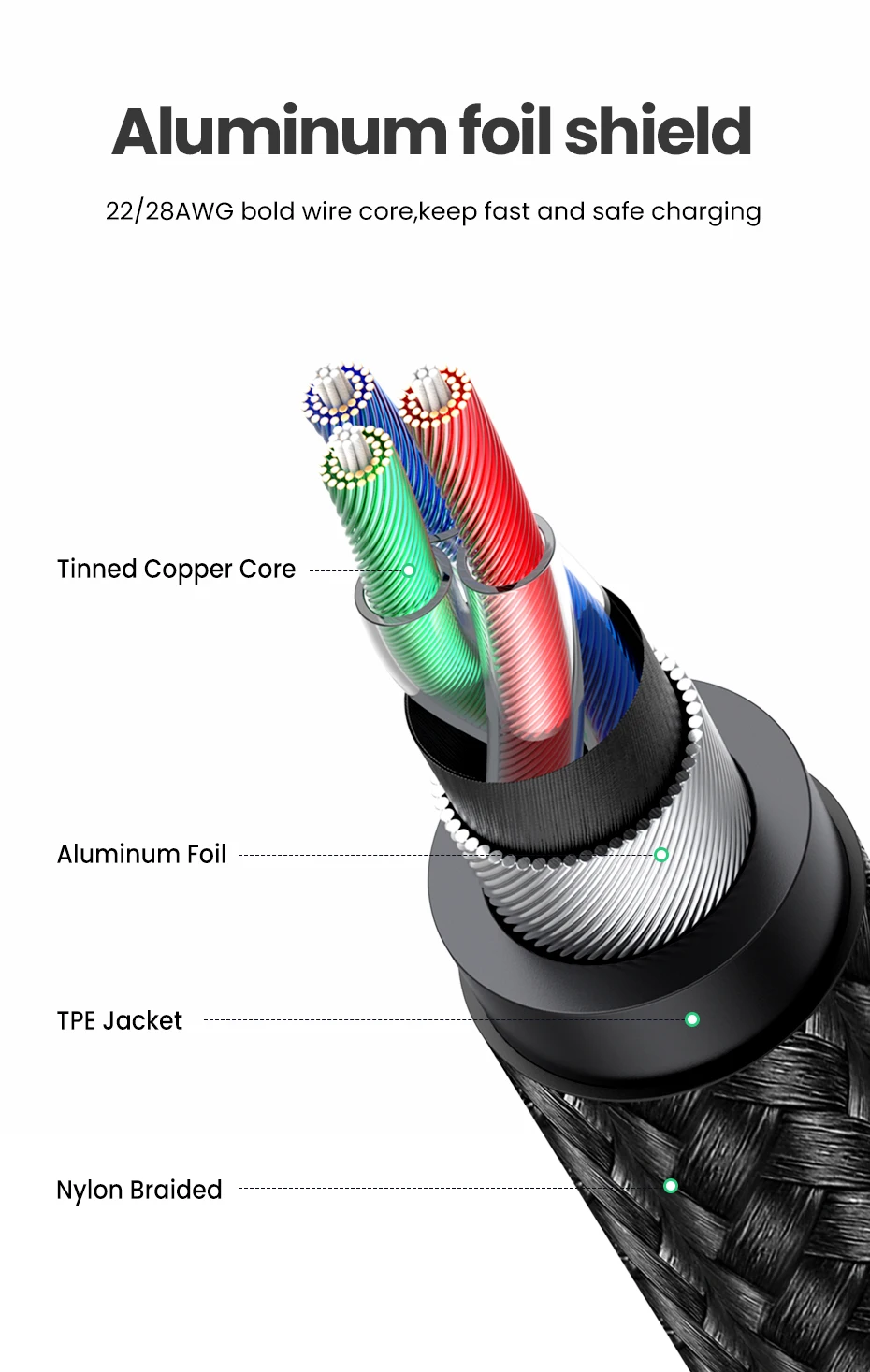 22/28AWG bold wire core,keep fast and safe charging