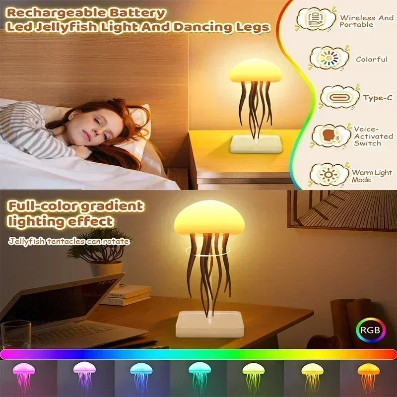 【Simulation dynamic tentacles】: The LED Smart Jellyfish Night Light features nine rotatable tentacles that mimic the natural movement of a jellyfish, captivating onlookers with its graceful and hypnotic dance, perfect for inspiring imagination and wonder.