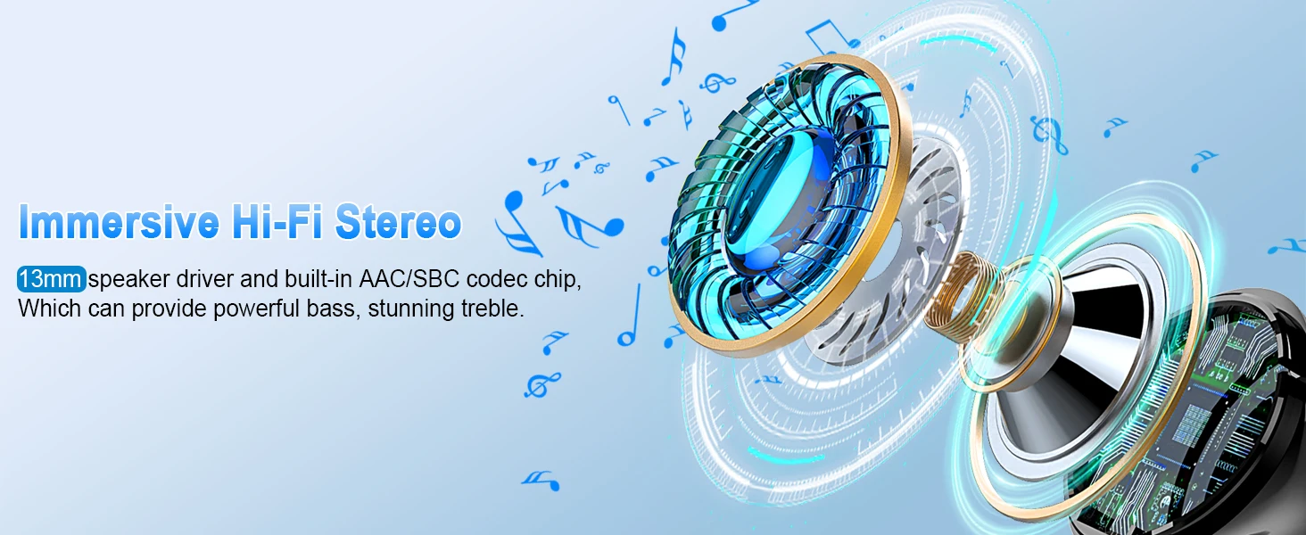 13mm Double-Layer Diaphragm Drivers: These drivers are designed to deliver a balanced audio experience with strong bass, clear mids, and bright treble, catering to a wide range of music genres.